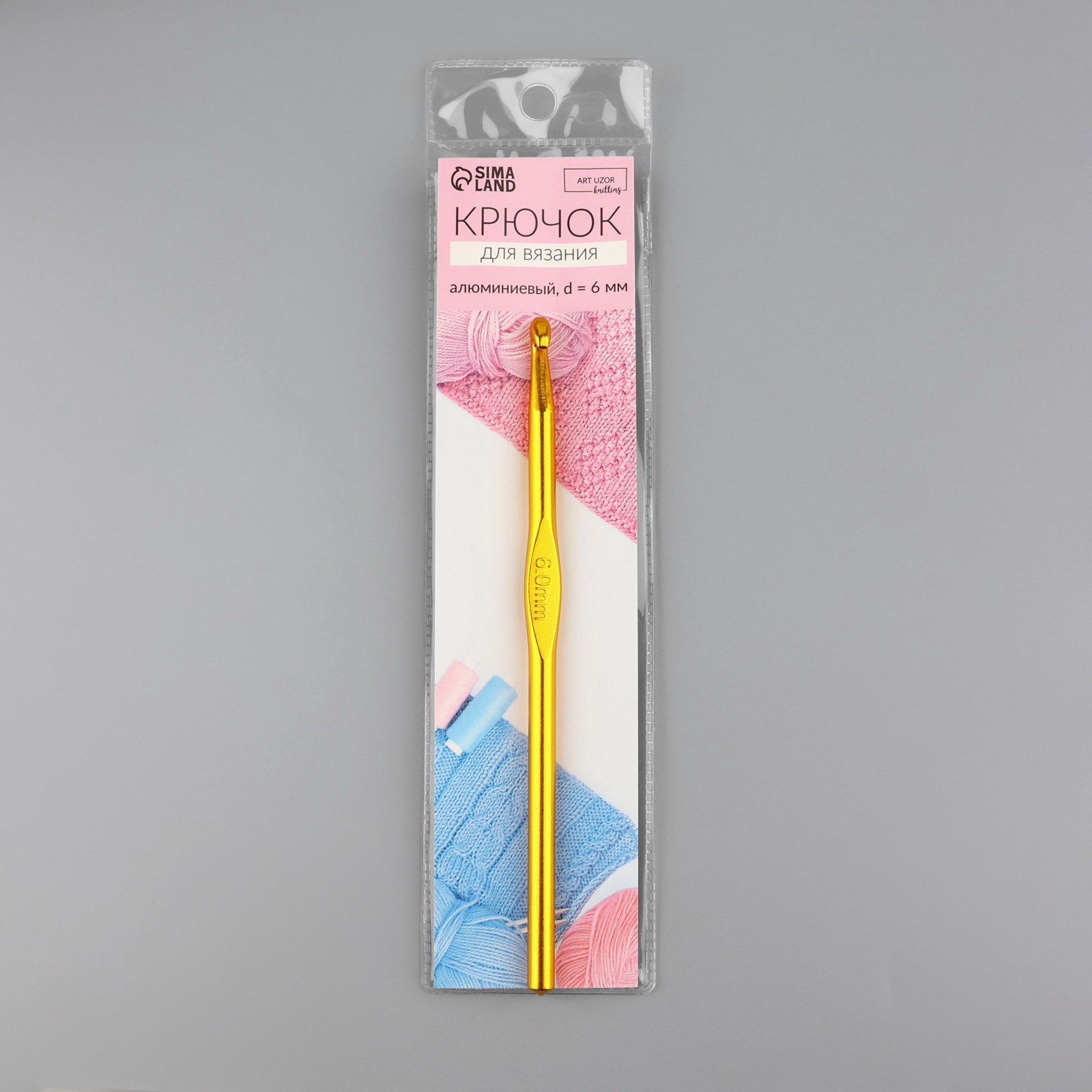 Крючок для вязания, d = 6 мм, 15 см, цвет МИКС, 60х60х0.6 см., Арт Узор, Китай