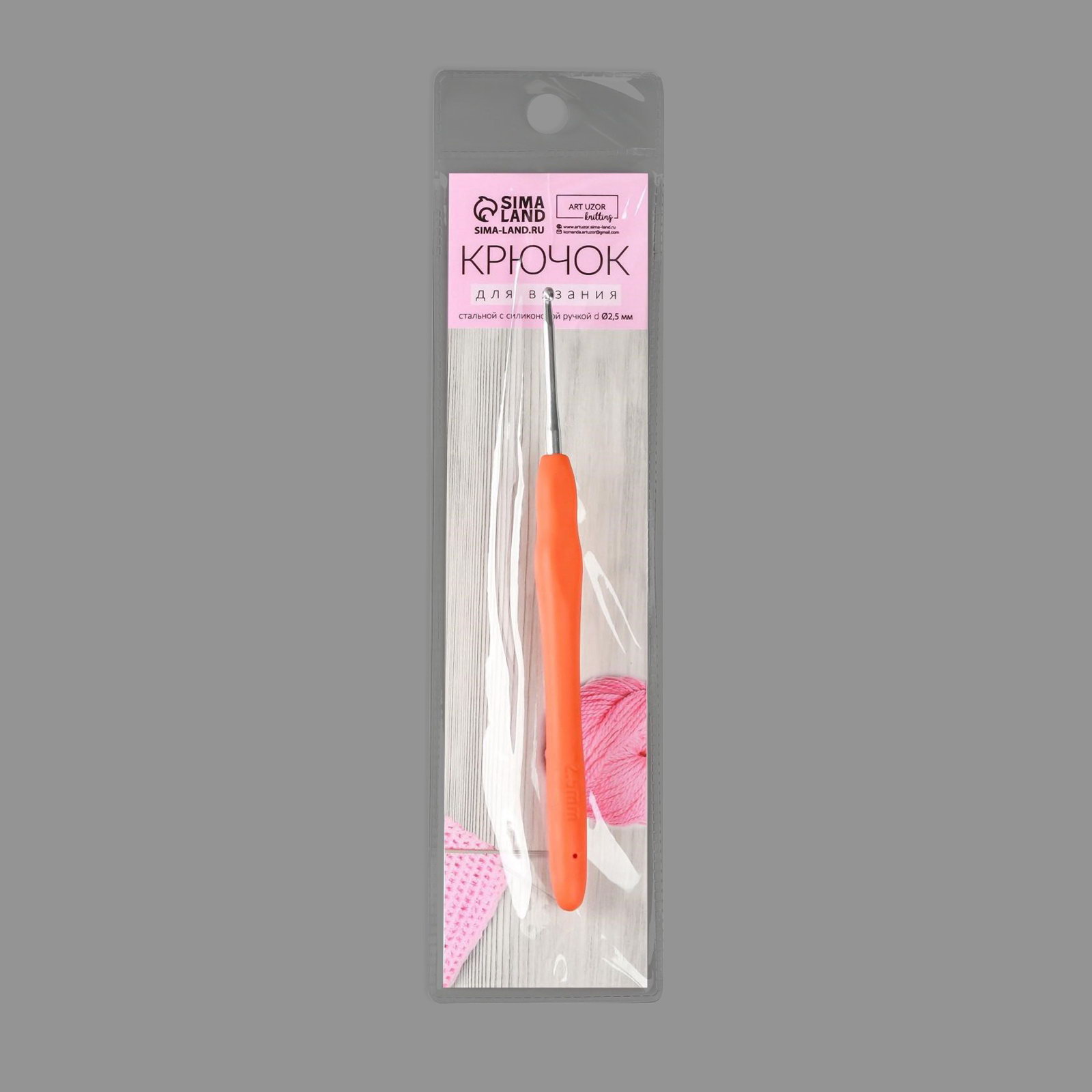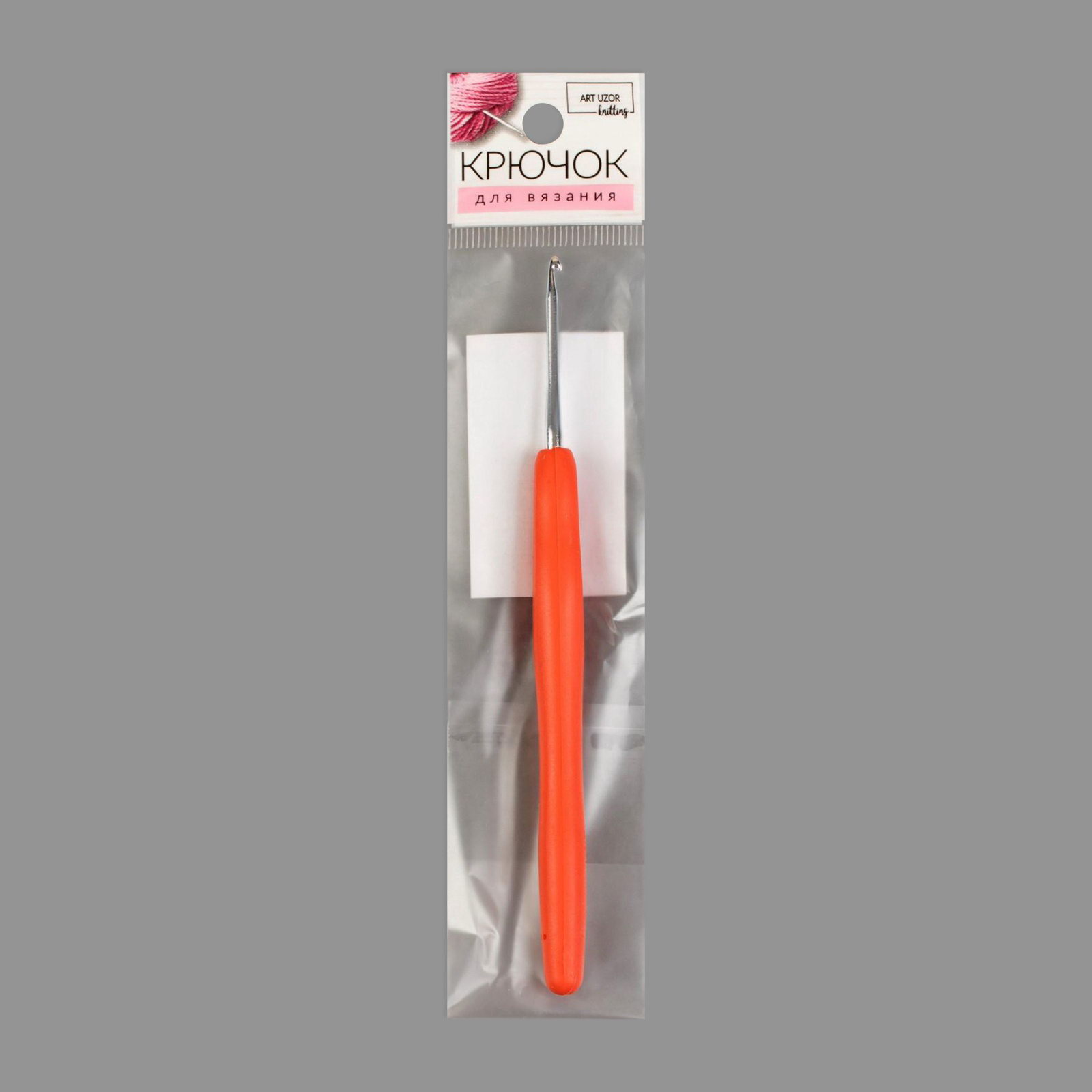 Крючок для вязания, с силиконовой ручкой, d=2.5 мм, 14 см, оранжевый, 25х25х1 см., Арт Узор, Китай