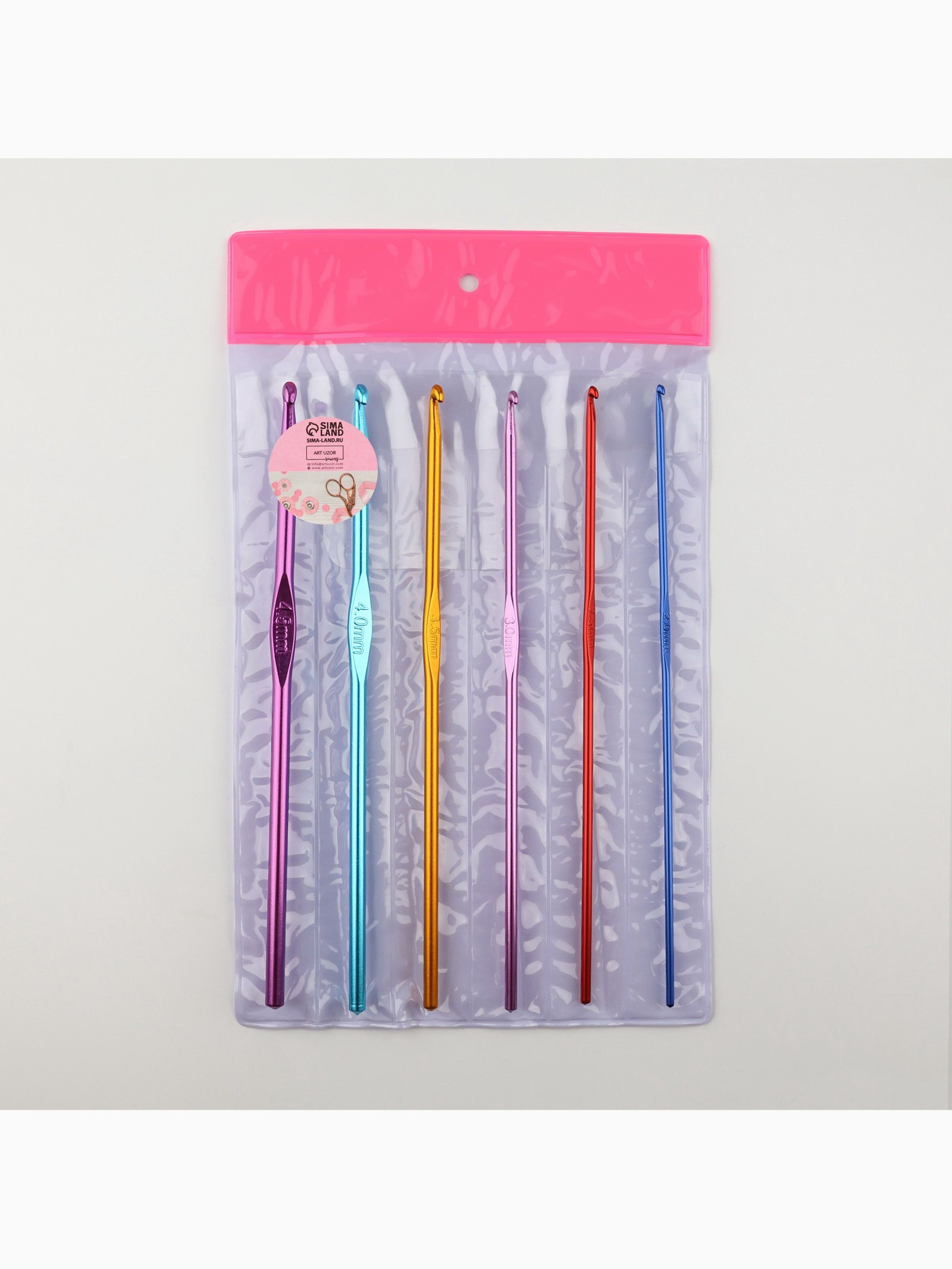 Набор крючков для вязания, d=2-4.5 мм, 14.5 см, 6 шт., разноцветный, 8x14.5x0.5 см., Арт Узор, Китай