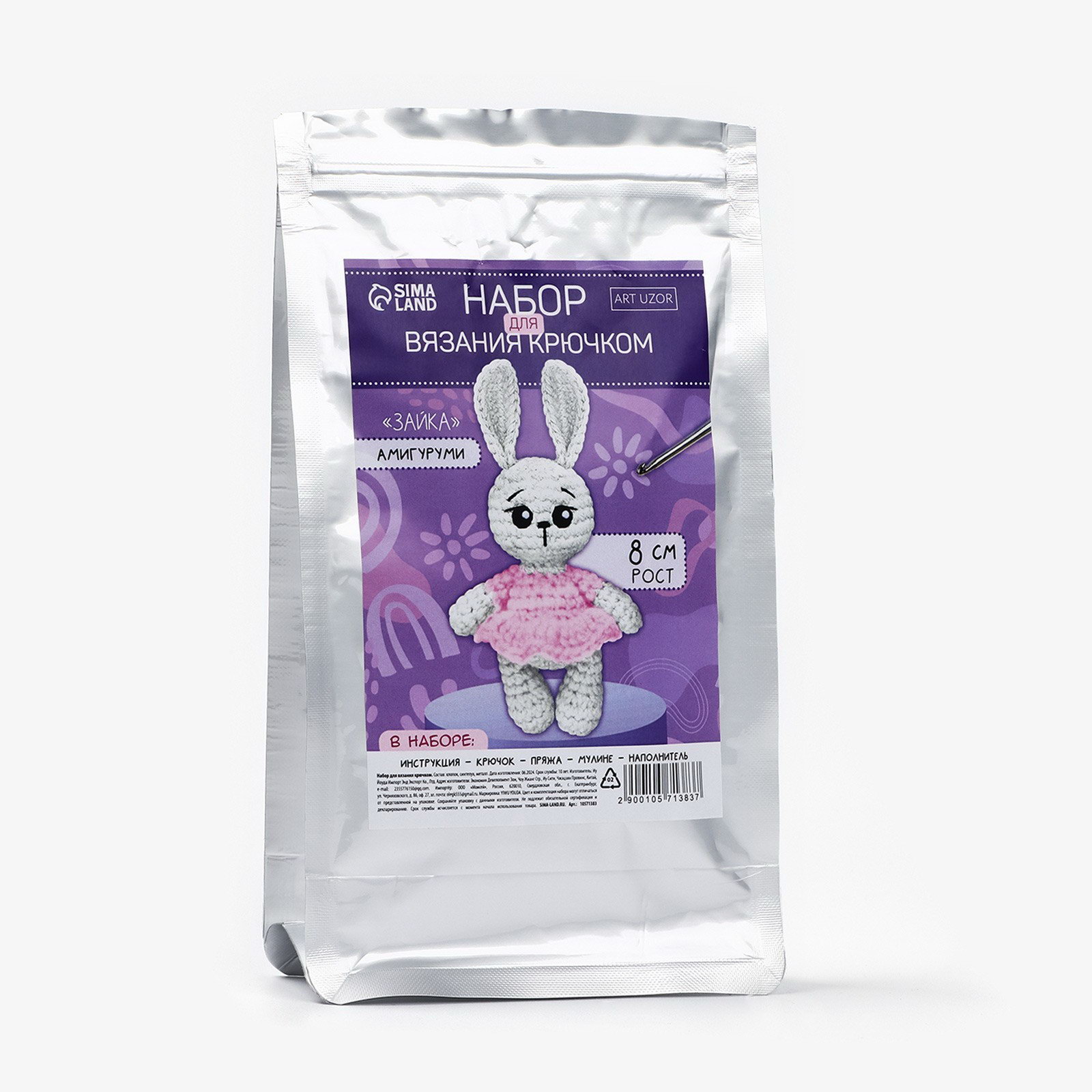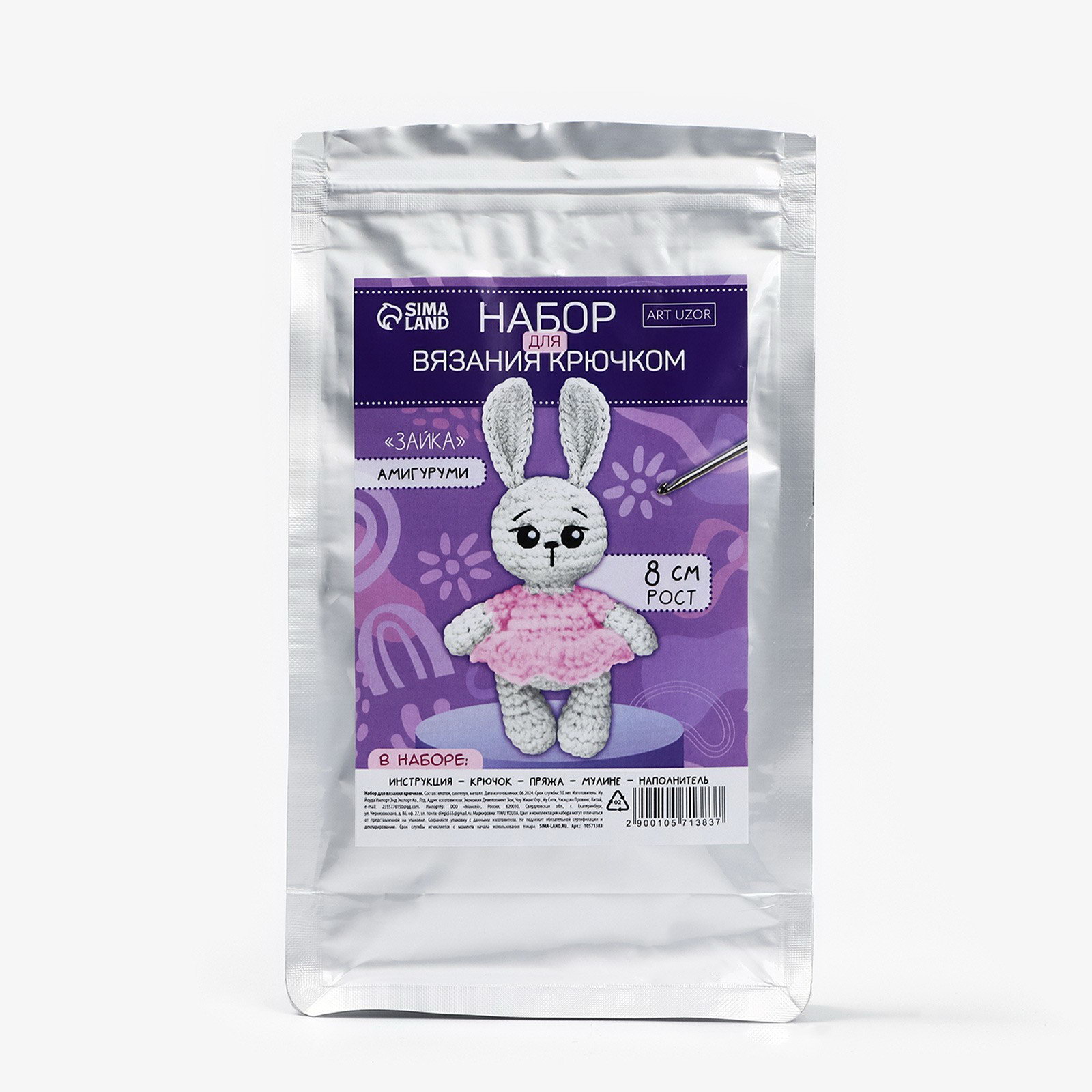 Набор для вязания крючком. Амигуруми: мягкая игрушка своими руками "Зайка", 8 см, Арт Узор, Китай