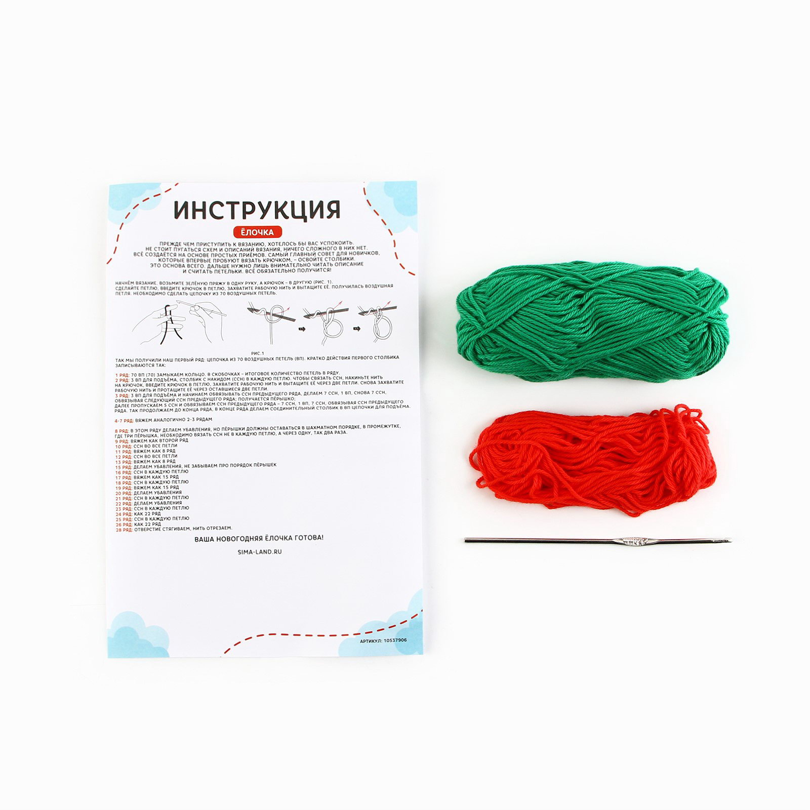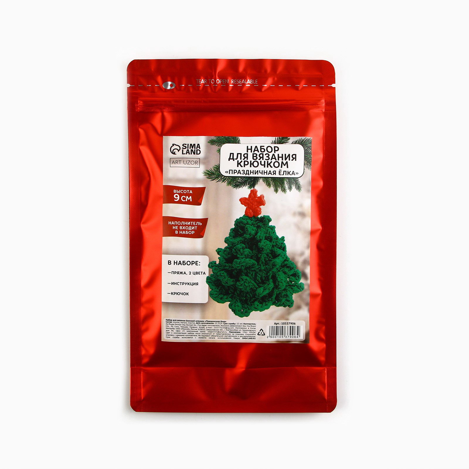 Ёлочная игрушка на новый год своими руками. Набор для вязания "Праздничная ёлка", 9 см, новогодний набор для творчества, 20x13x7 см., Арт Узор, Китай