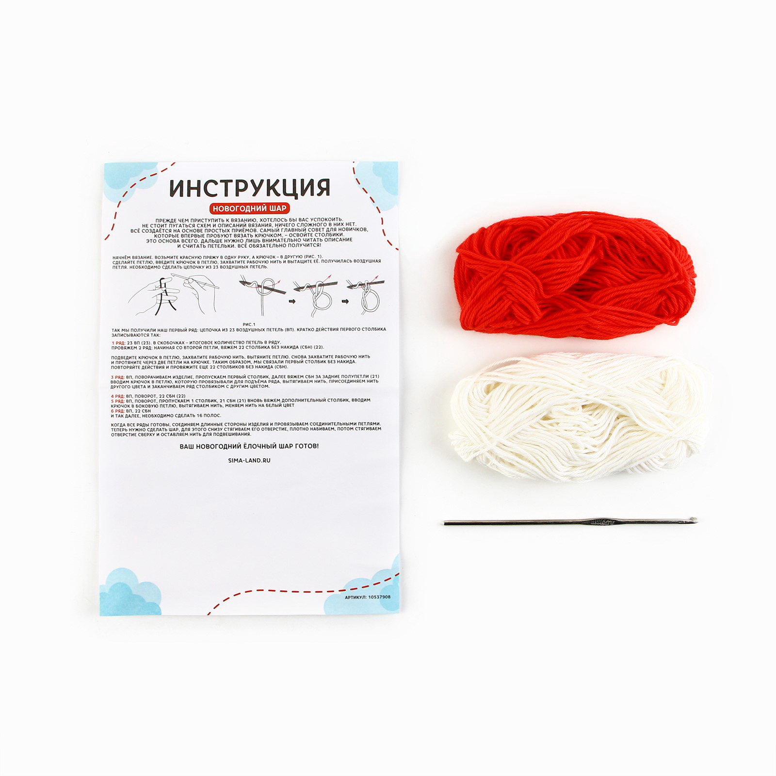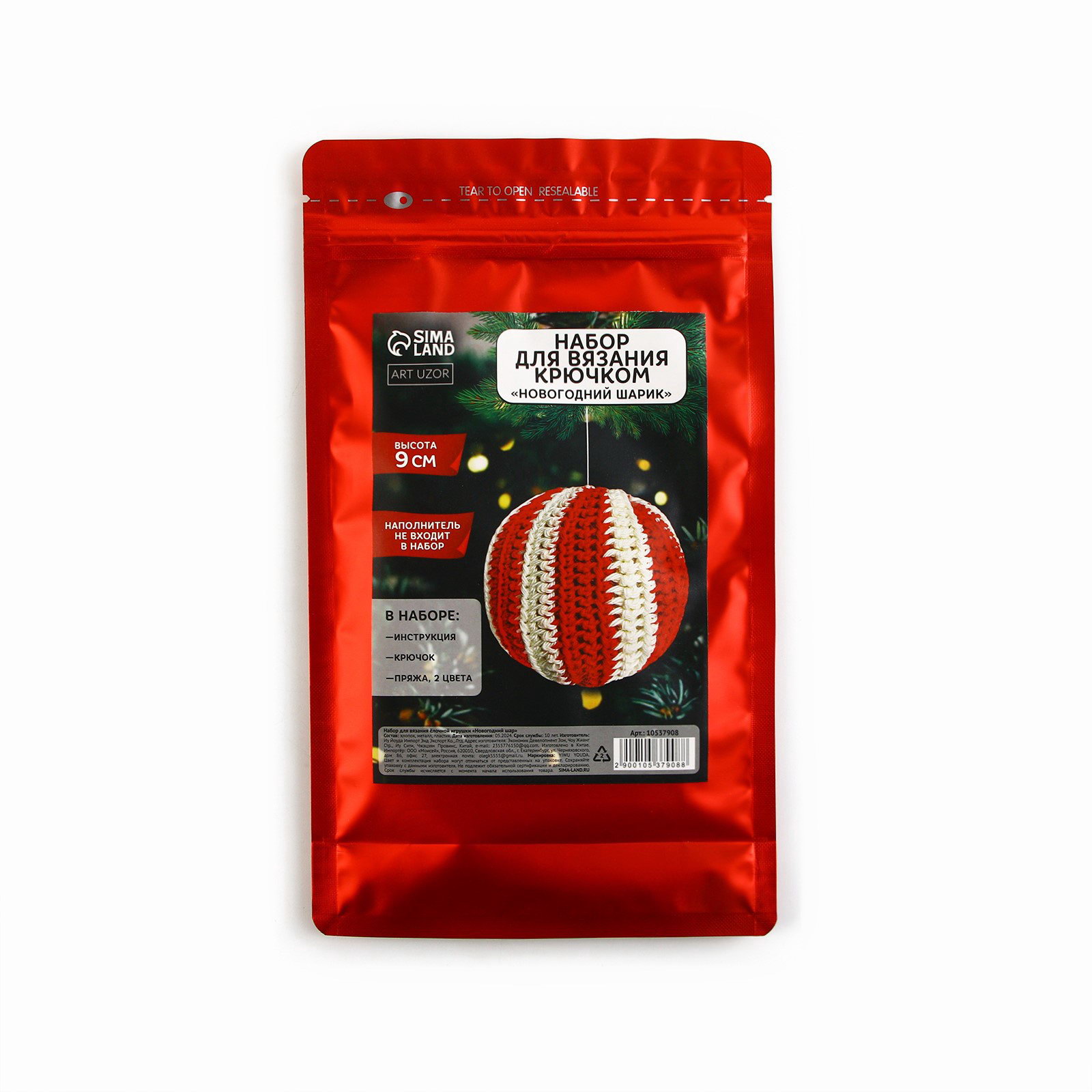 Ёлочная игрушка на новый год своими руками. Набор для вязания "Новогодний шар", 9 см, новогодний набор для творчества, 20x13x7 см., Арт Узор, Китай