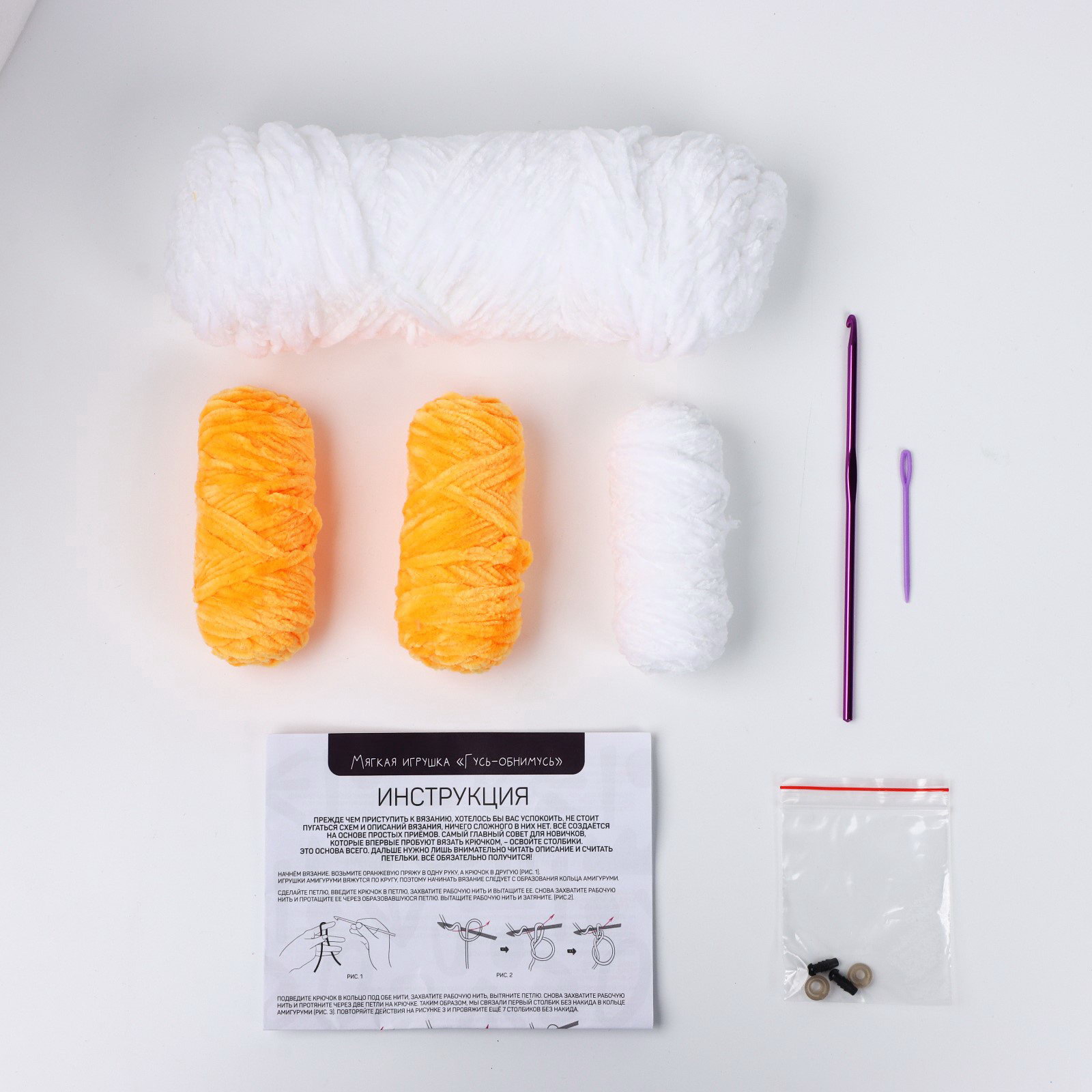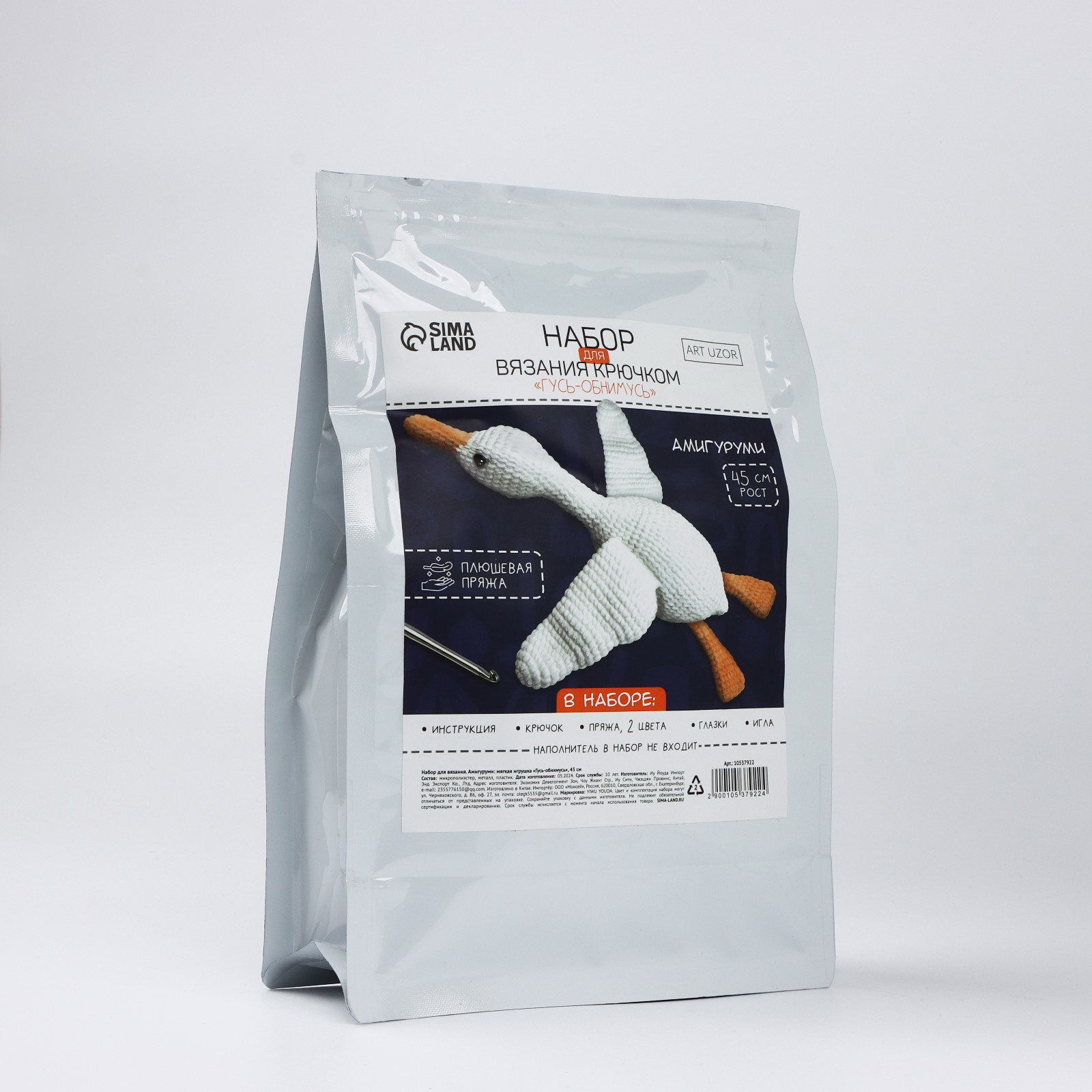 Набор для вязания крючком. Амигуруми: мягкая игрушка своими руками "Гусь-обнимусь", 45 см, 16x25x11 см., Арт Узор, Китай