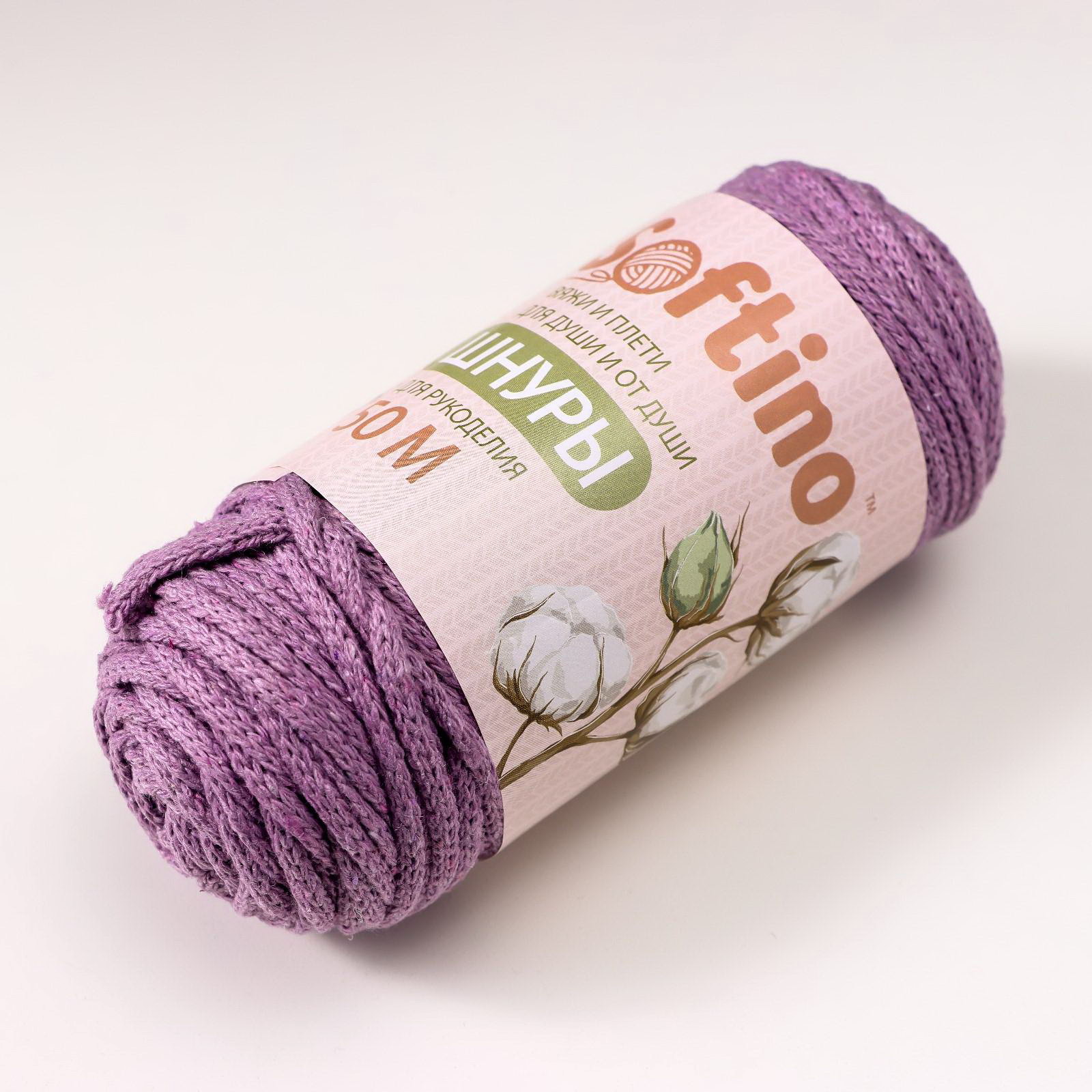 Шнур для рукоделия хлопковый 100% хлопок 4 мм, 50м/140гр, Softino, Россия