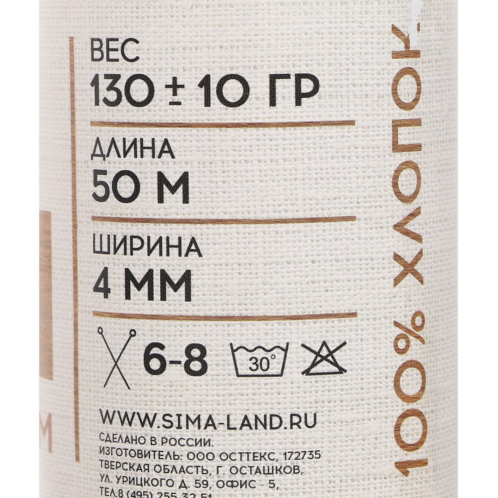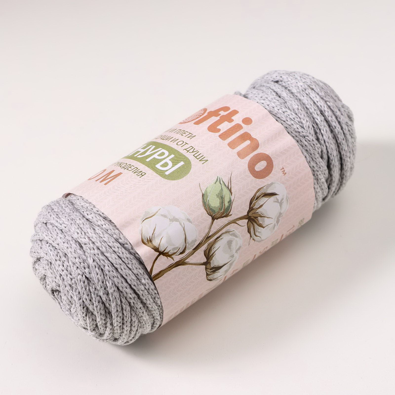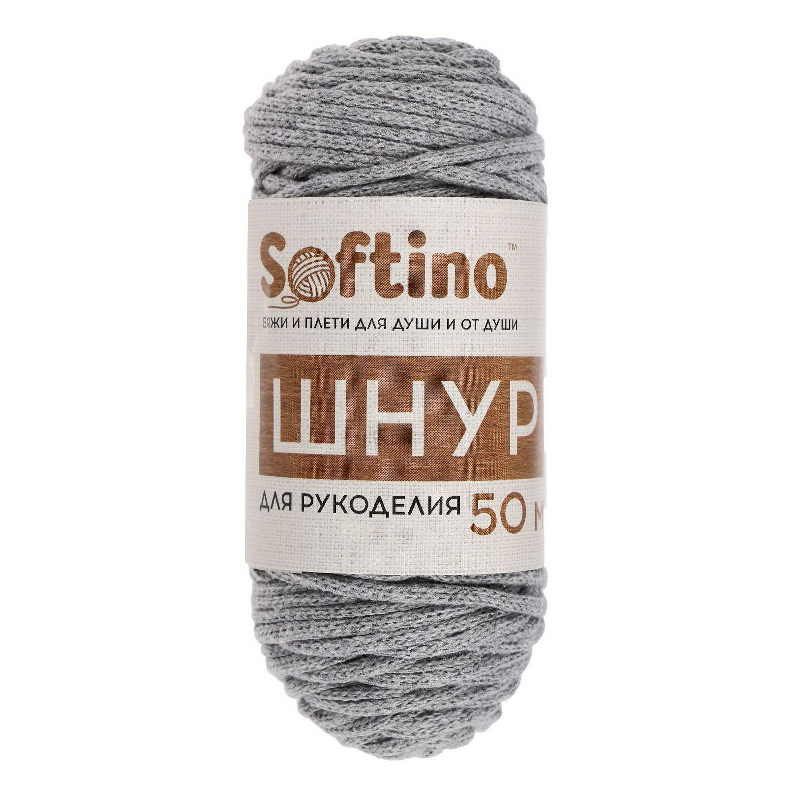 Шнур для рукоделия хлопковый 100% хлопок 4 мм, 50м/140гр, Softino, Россия