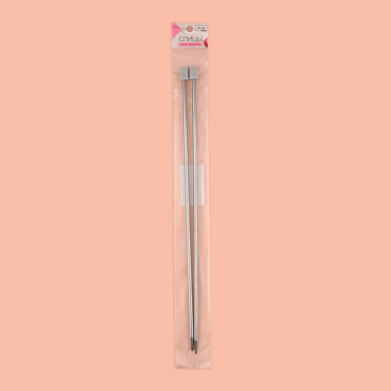 Спицы для вязания, прямые, d=5 мм, 35 см, 2 шт., 50х50х0.5 см., Арт Узор, Китай