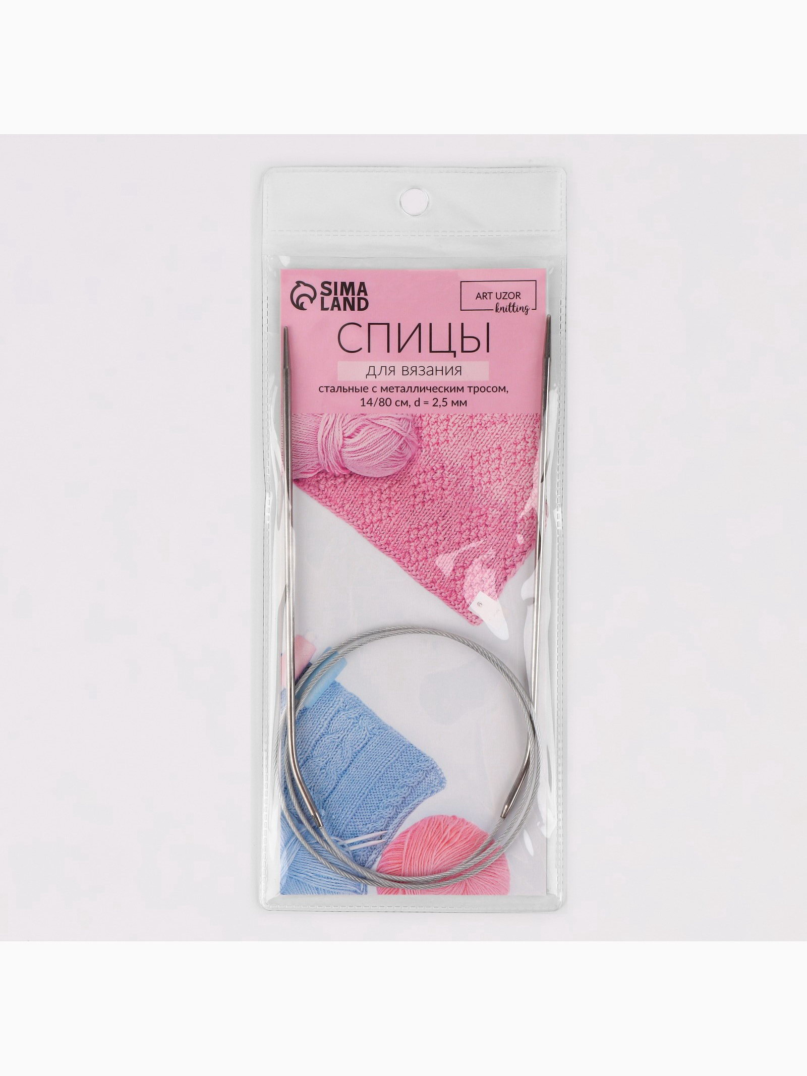 Спицы круговые, для вязания, с пластиковой леской, d=2.5 мм, 14/80 см, с иглой, 25х25х0.5 см., Арт Узор, Китай