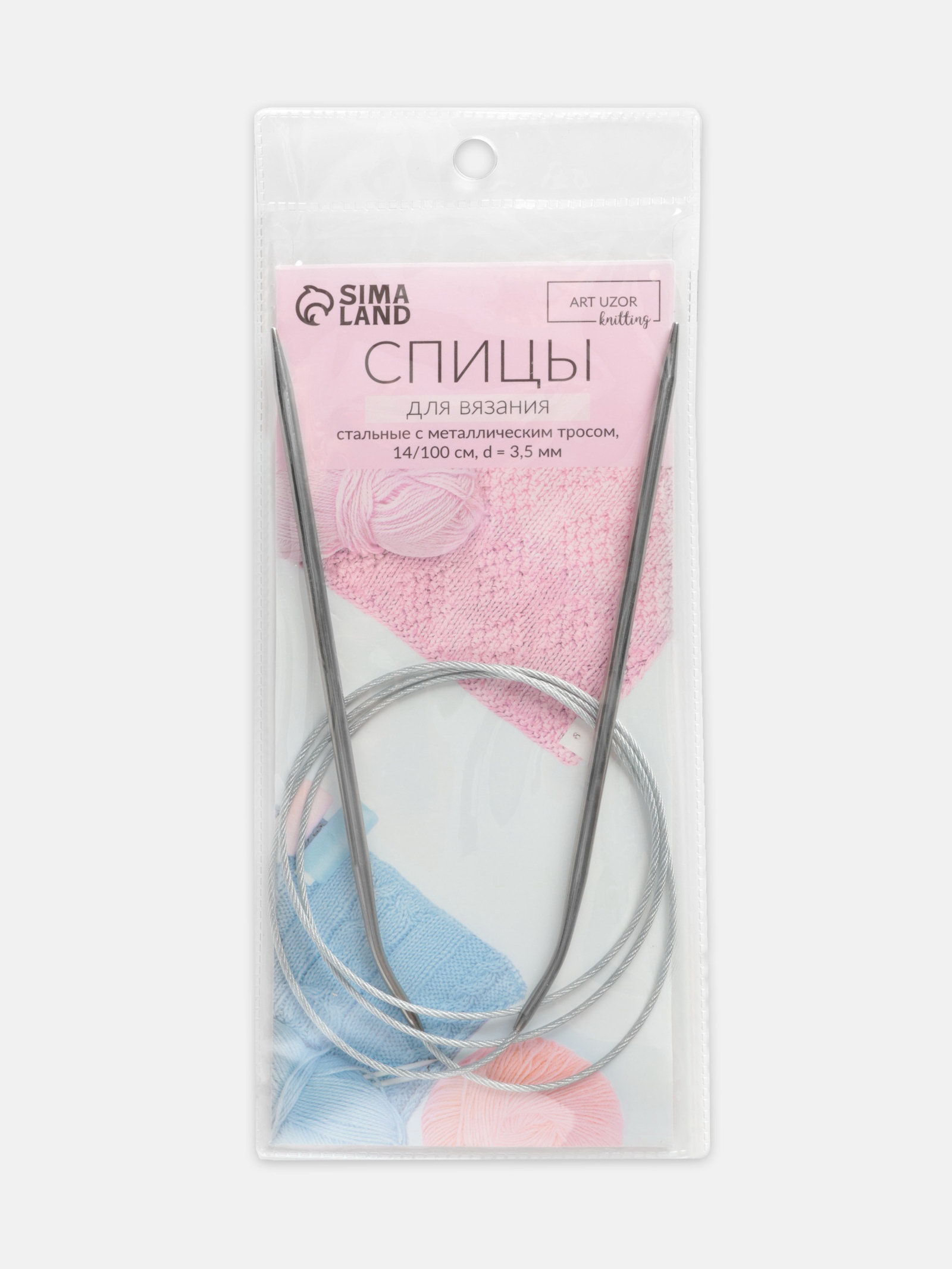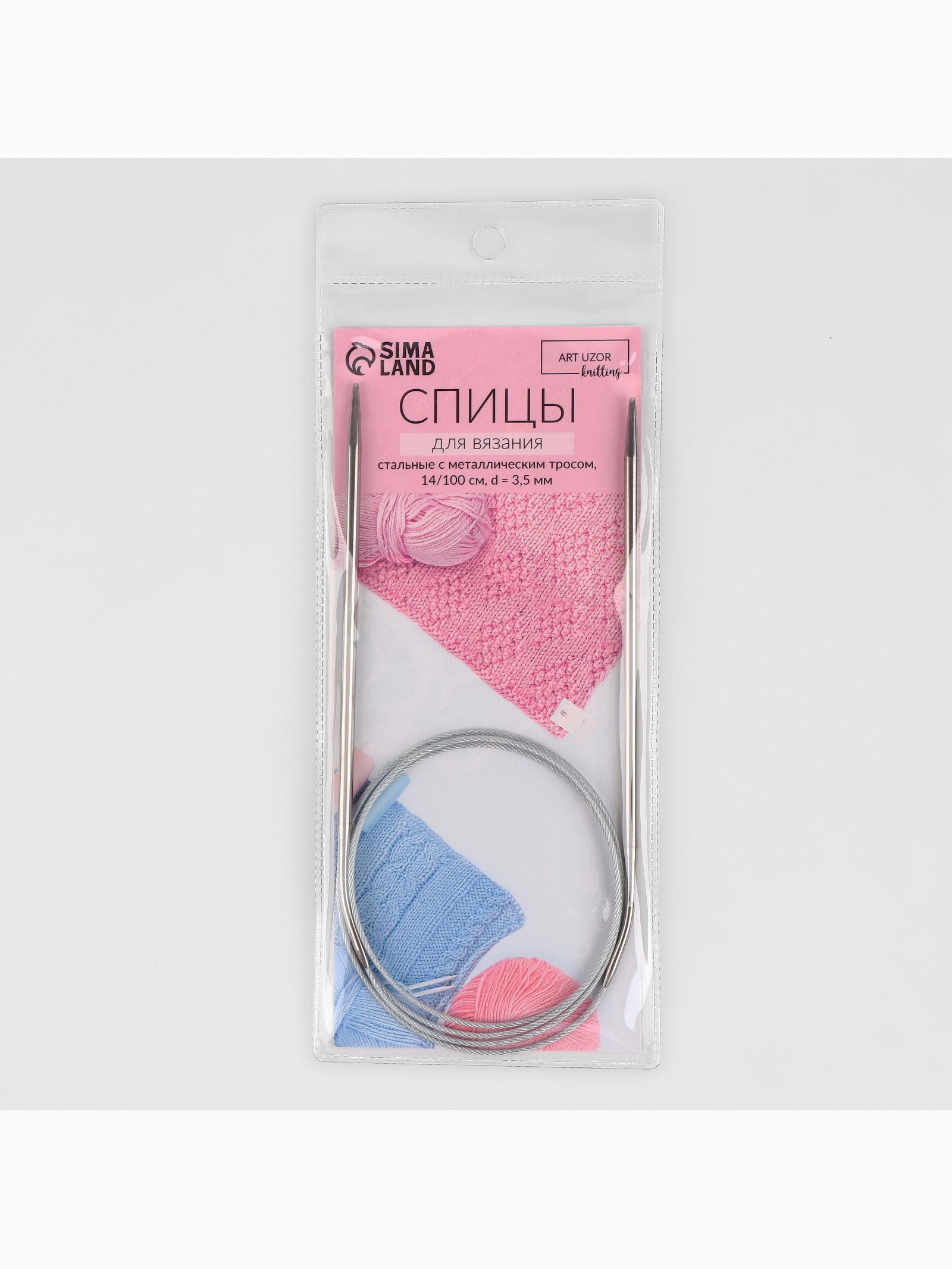 Спицы круговые, для вязания, с металлическим тросом, d=3.5 мм, 14/100 см, 35х35х0.5 см., Арт Узор, Китай