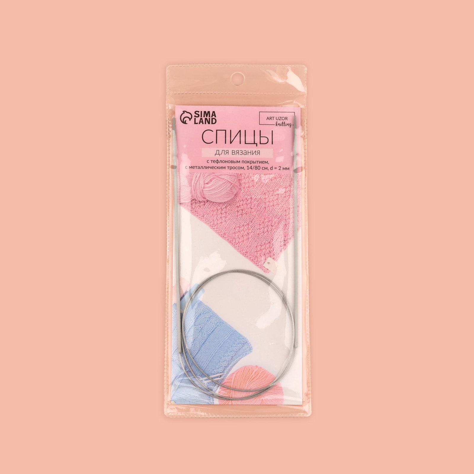 Спицы круговые, для вязания, с тефлоновым покрытием, с металлическим тросом, d=2 мм, 14/80 см, 20х20х0.5 см., Арт Узор, Китай