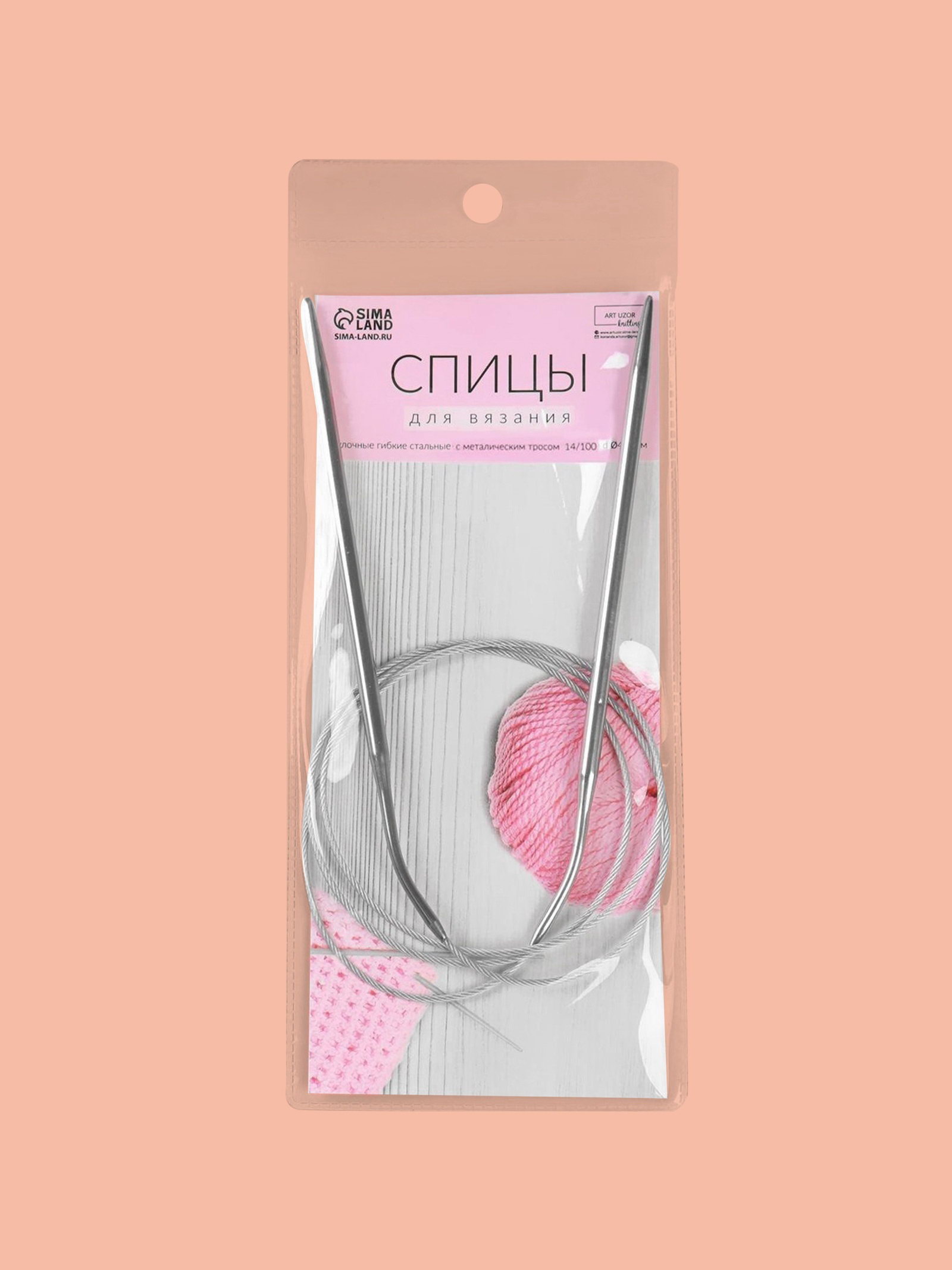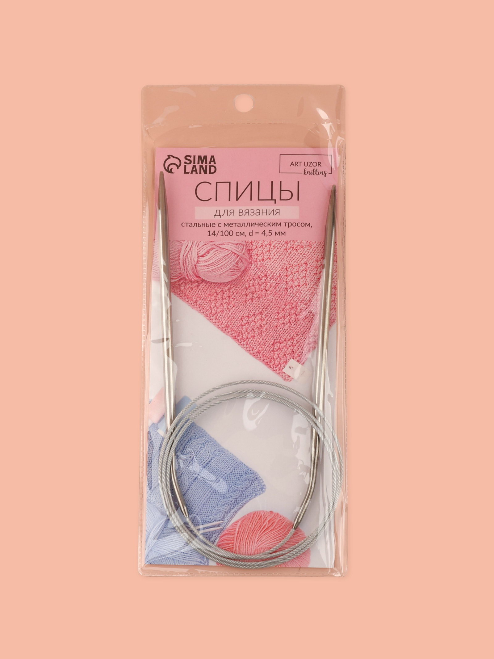 Спицы круговые, для вязания, с металлическим тросом, d=4.5 мм, 14/100 см, 45х45х0.4 см., Арт Узор, Китай