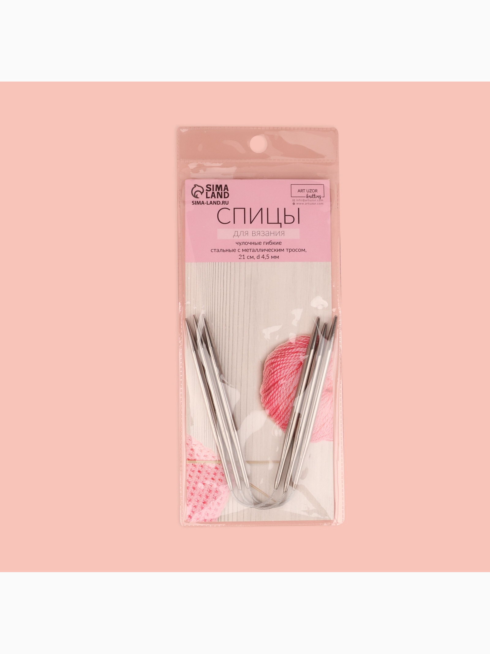 Спицы для вязания, чулочные, гибкие, d=4.5 мм, 21 см, 3 шт., 45х45х1 см., Арт Узор, Китай