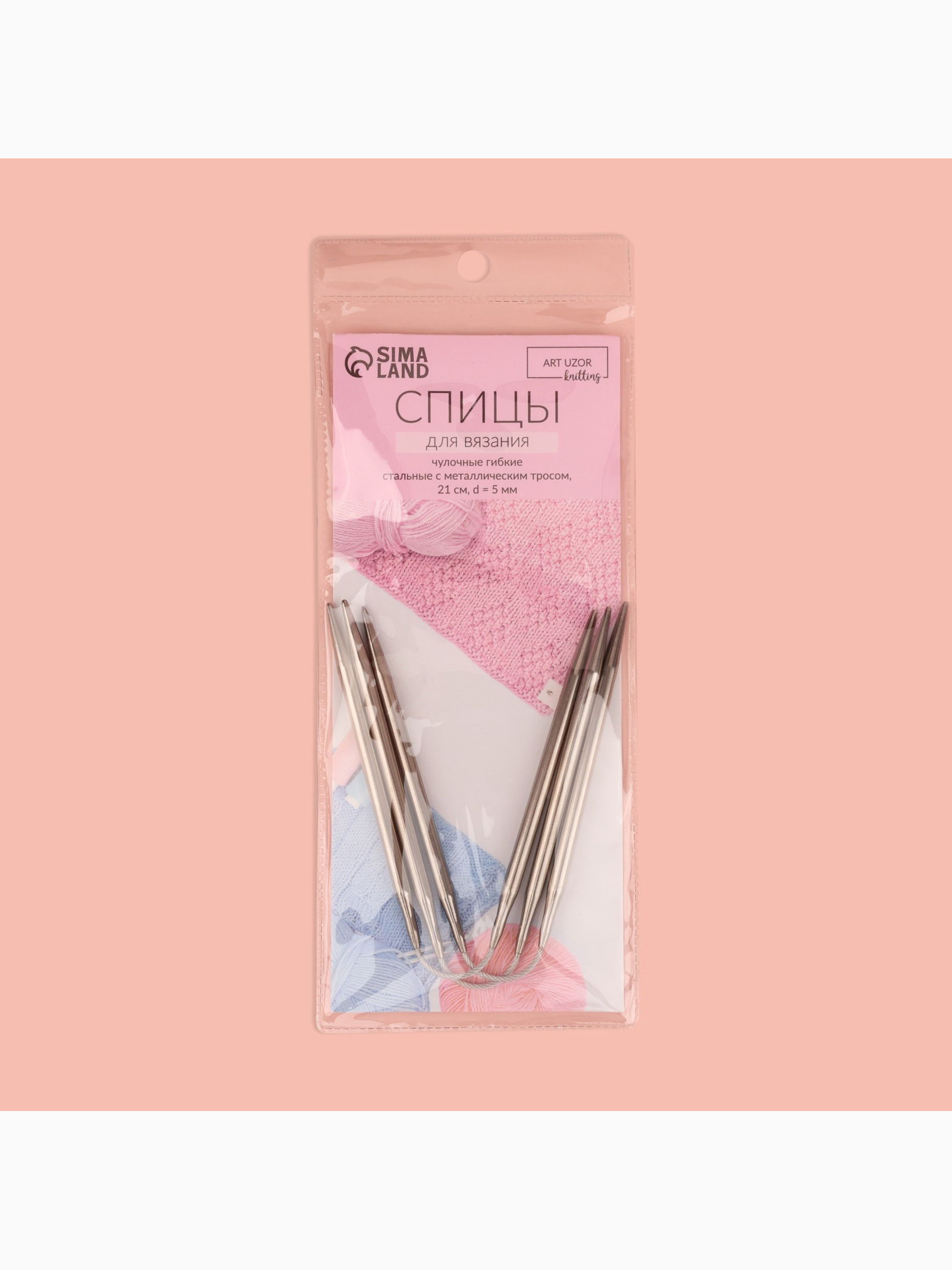 Спицы для вязания, чулочные, гибкие, d=5 мм, 21 см, 3 шт., 50х50х1 см., Арт Узор, Китай