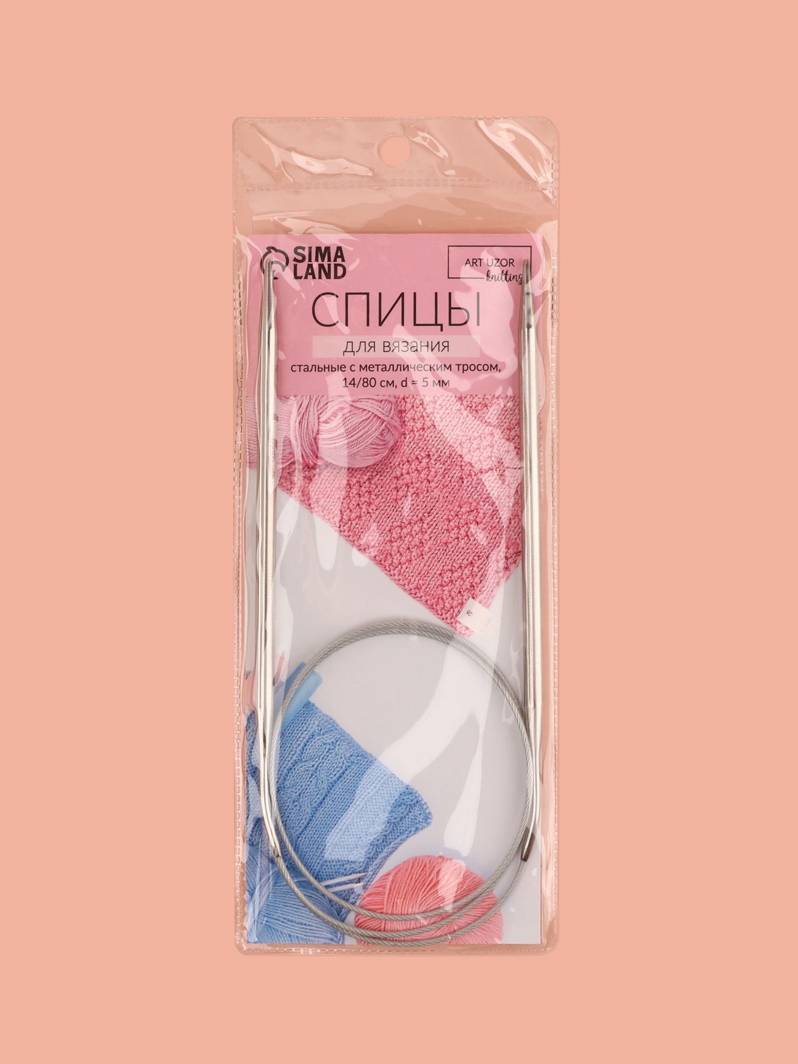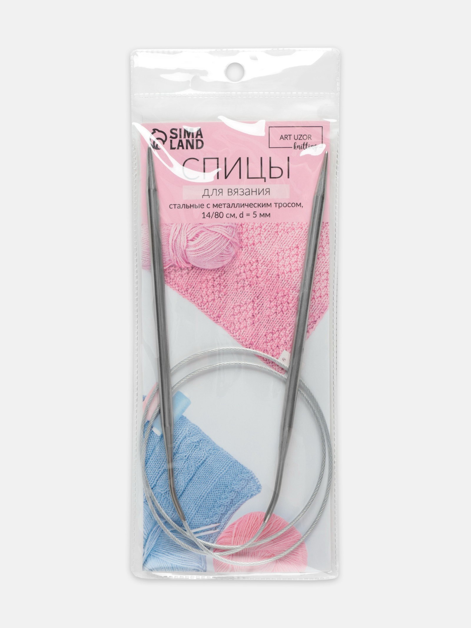Спицы круговые, для вязания, с металлическим тросом, d=5 мм, 14/80 см, 50х50х1 см., Арт Узор, Китай