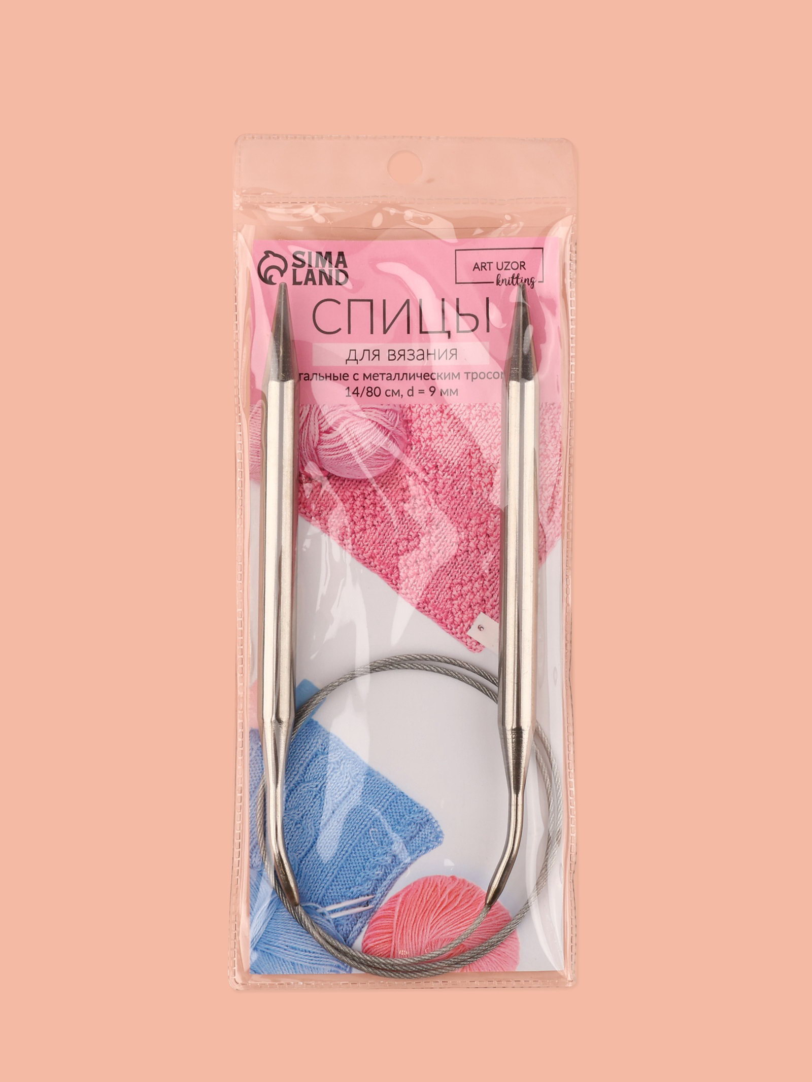 Спицы круговые, для вязания, с металлическим тросом, d=9 мм, 14/80 см, 90х90х0.5 см., Арт Узор, Китай