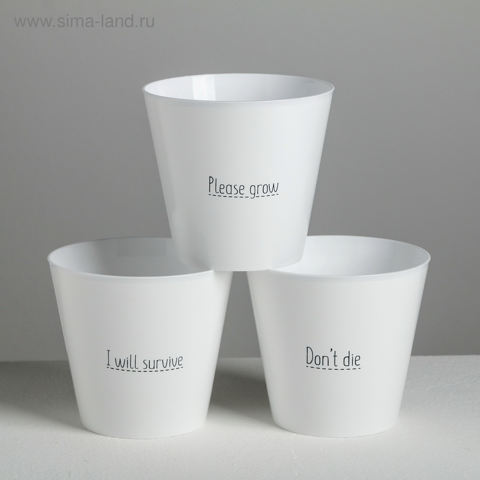 Набор кашпо 3 в 1 Please grow, 0.8 л, 11 x 12 см, 800 мл., Дарите Счастье, Россия
