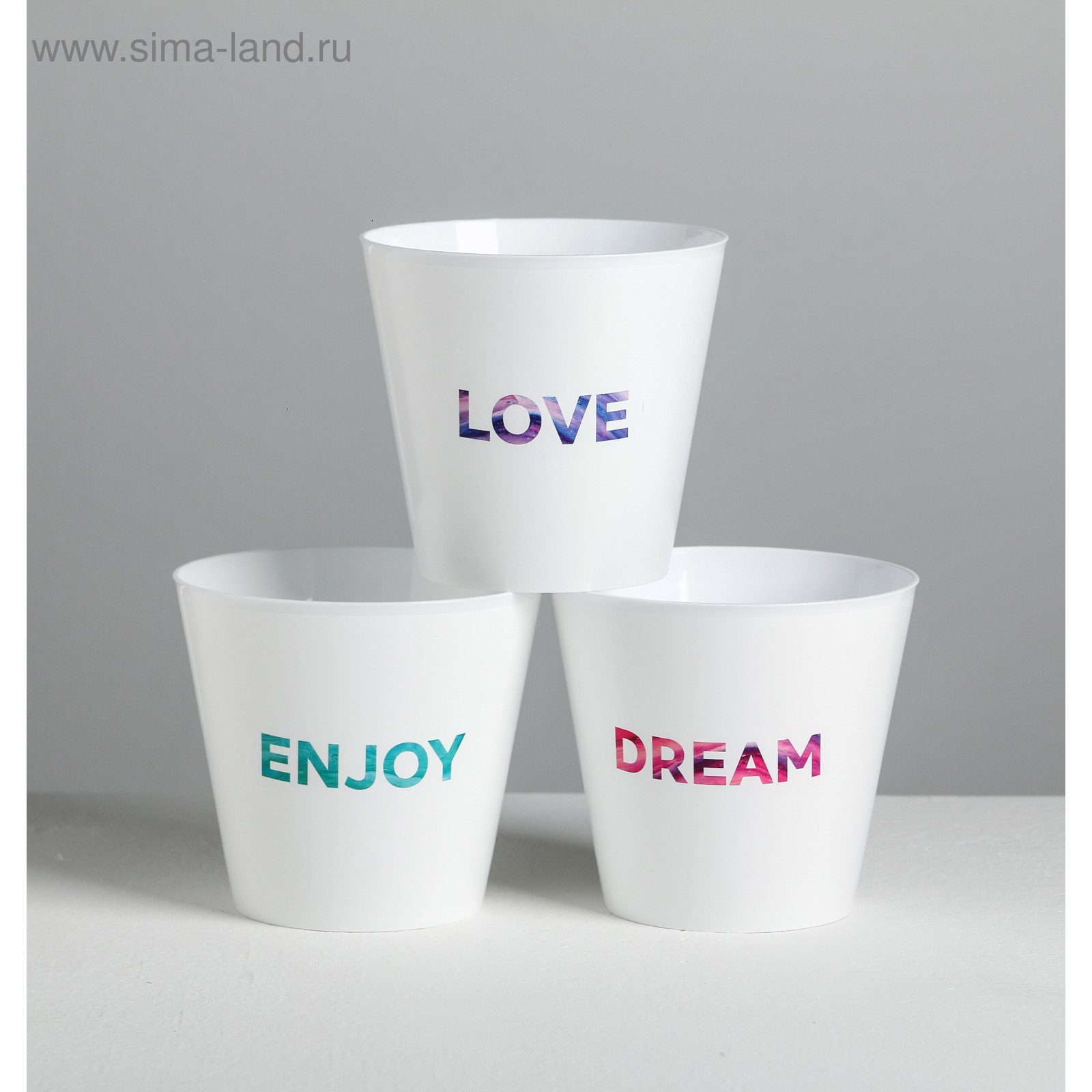 Набор кашпо 3 в 1 Dream, enjoy, love, тиснение, 0.8 л, 11 x 12 см, 800 мл., Дарите Счастье, Россия