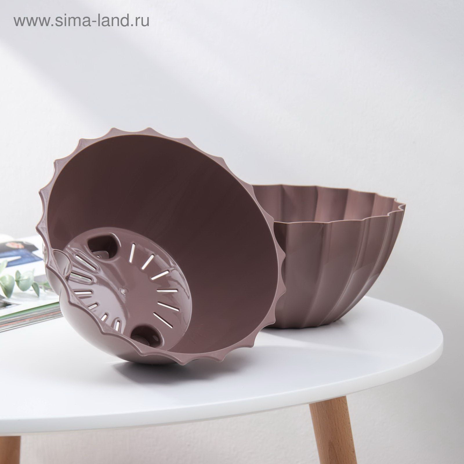 Кашпо с автополивом "Ракушка", 3.4 л, цвет мокко, 3400 мл., Plast-Avenue, Россия