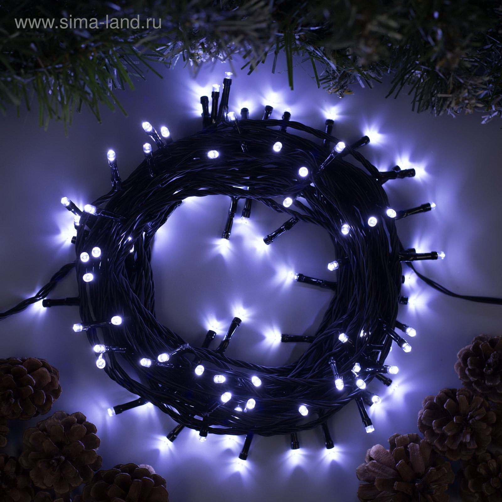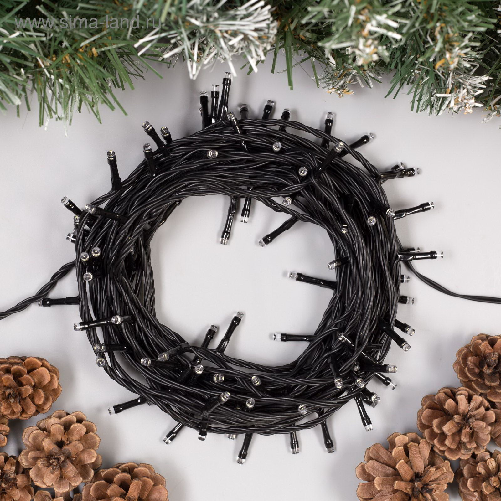 Гирлянда "Нить" 10 м, IP44, УМС, тёмная нить, 100 LED, свечение белое, 8 режимов, 24 В, Luazon Lighting, Китай