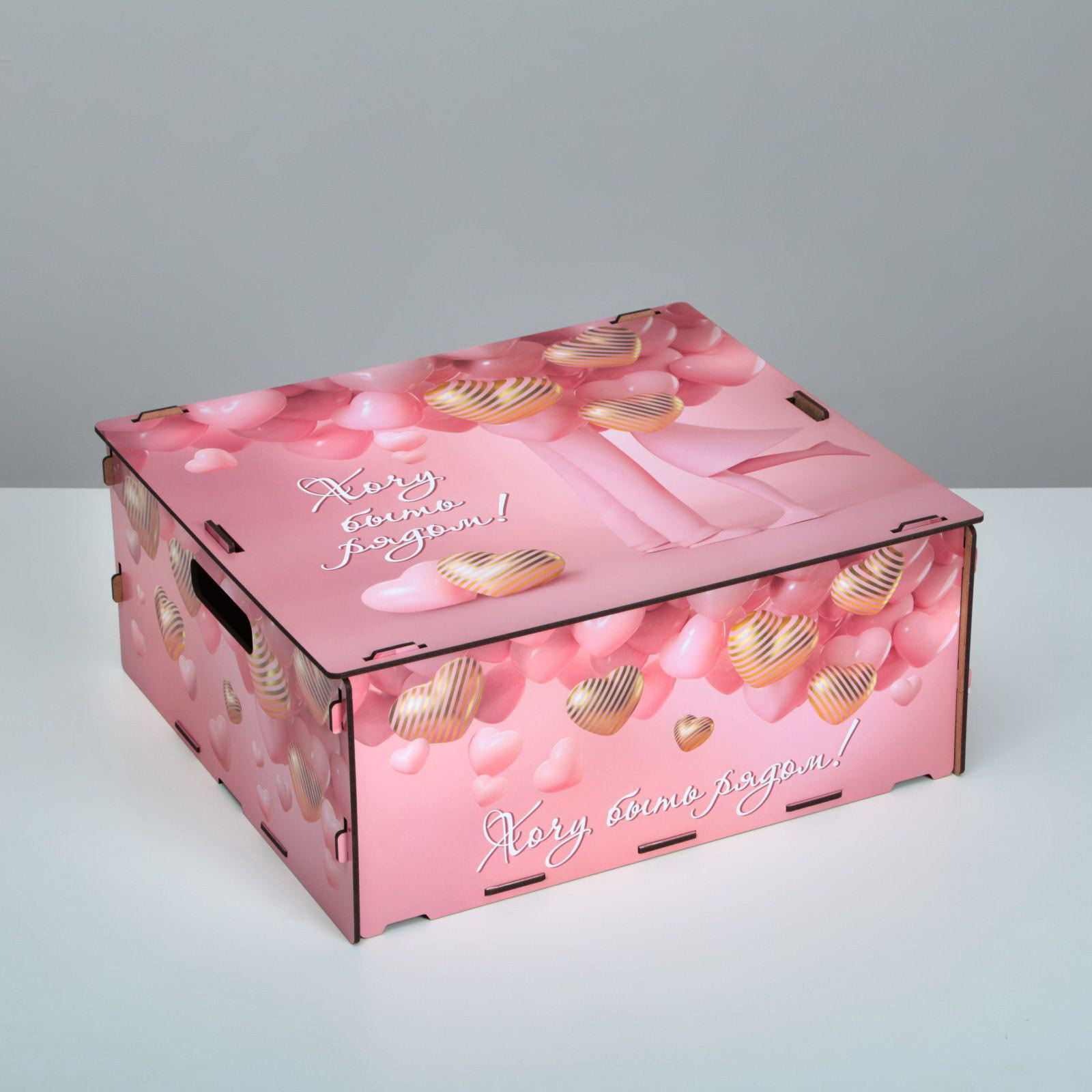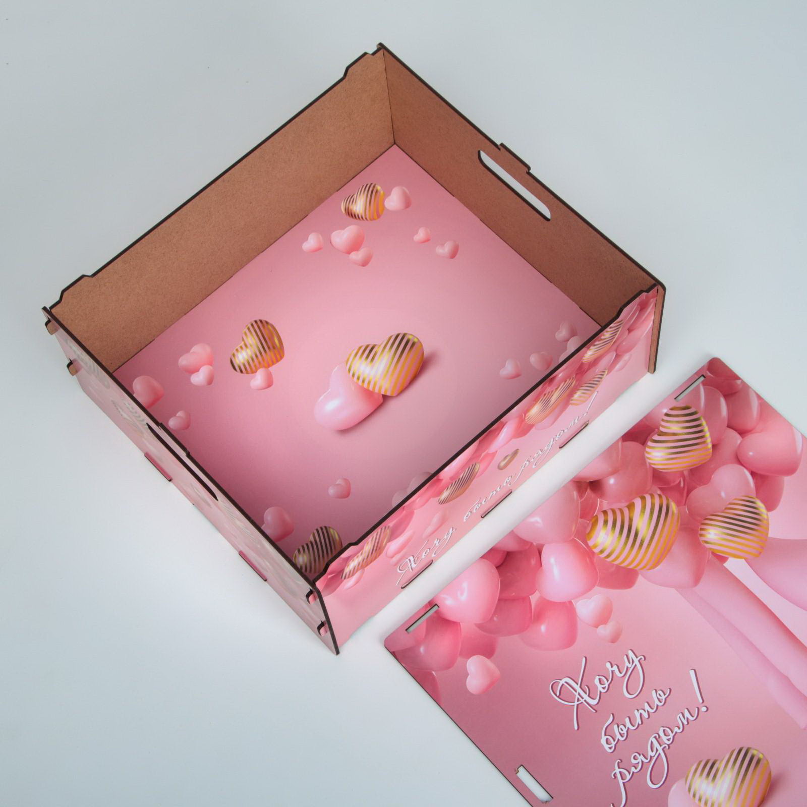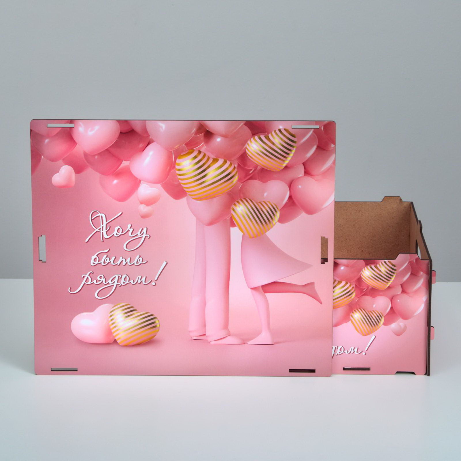 Подарочный ящик кашпо 33x29x14 см "Хочу быть рядом", деревянный, с принтом, Россия