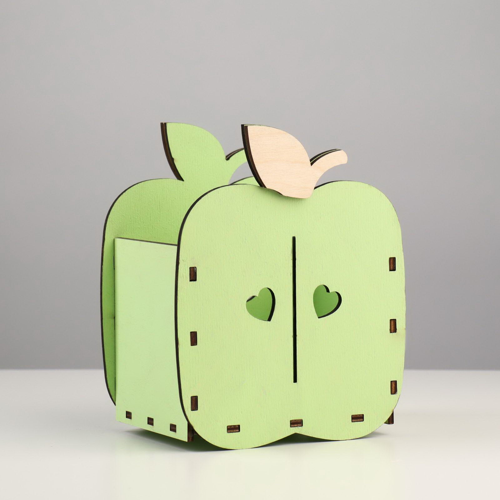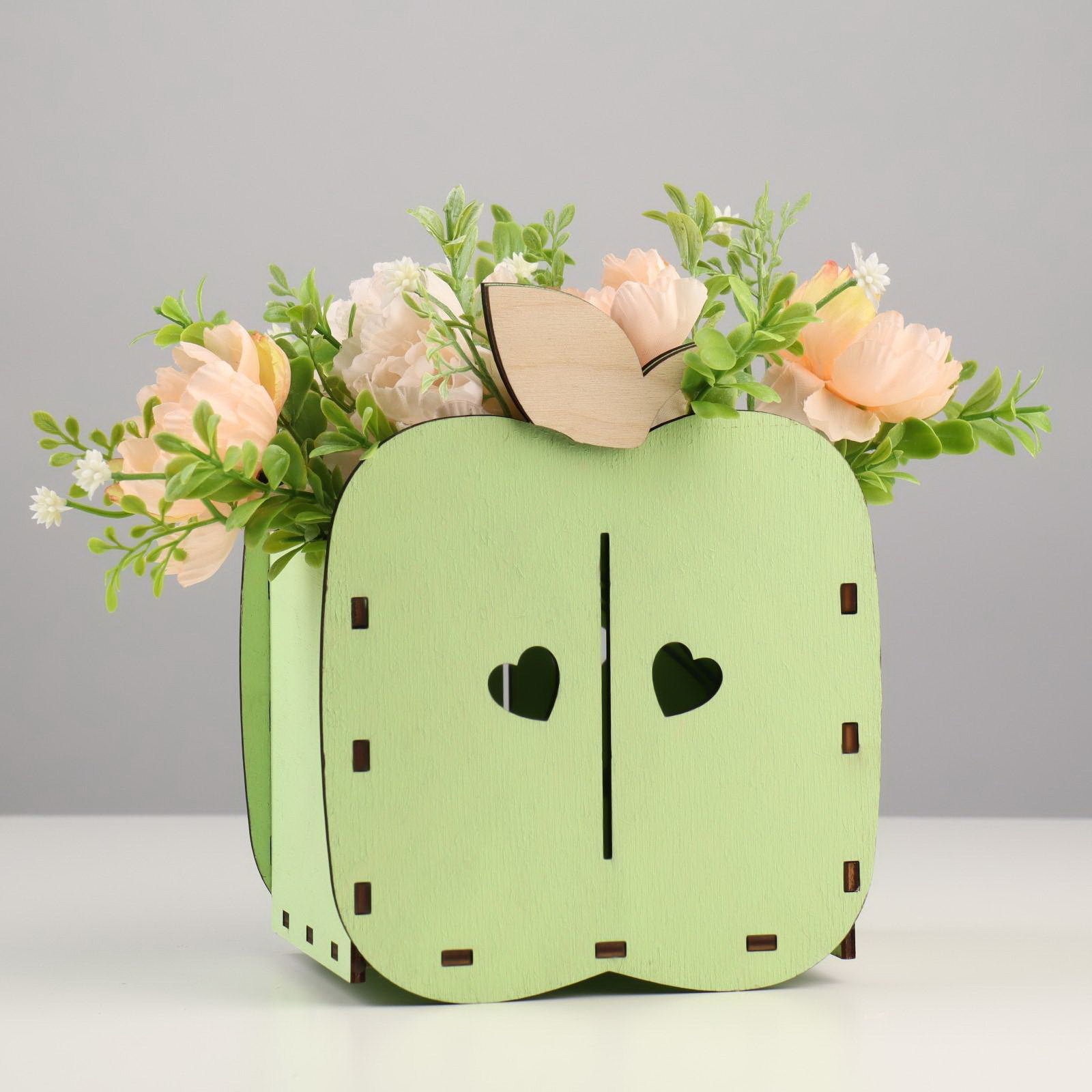 Кашпо деревянное для цветов "Яблоко", зеленый чай, 15.4х10.8х18.9 см, Дарим Красиво, Россия