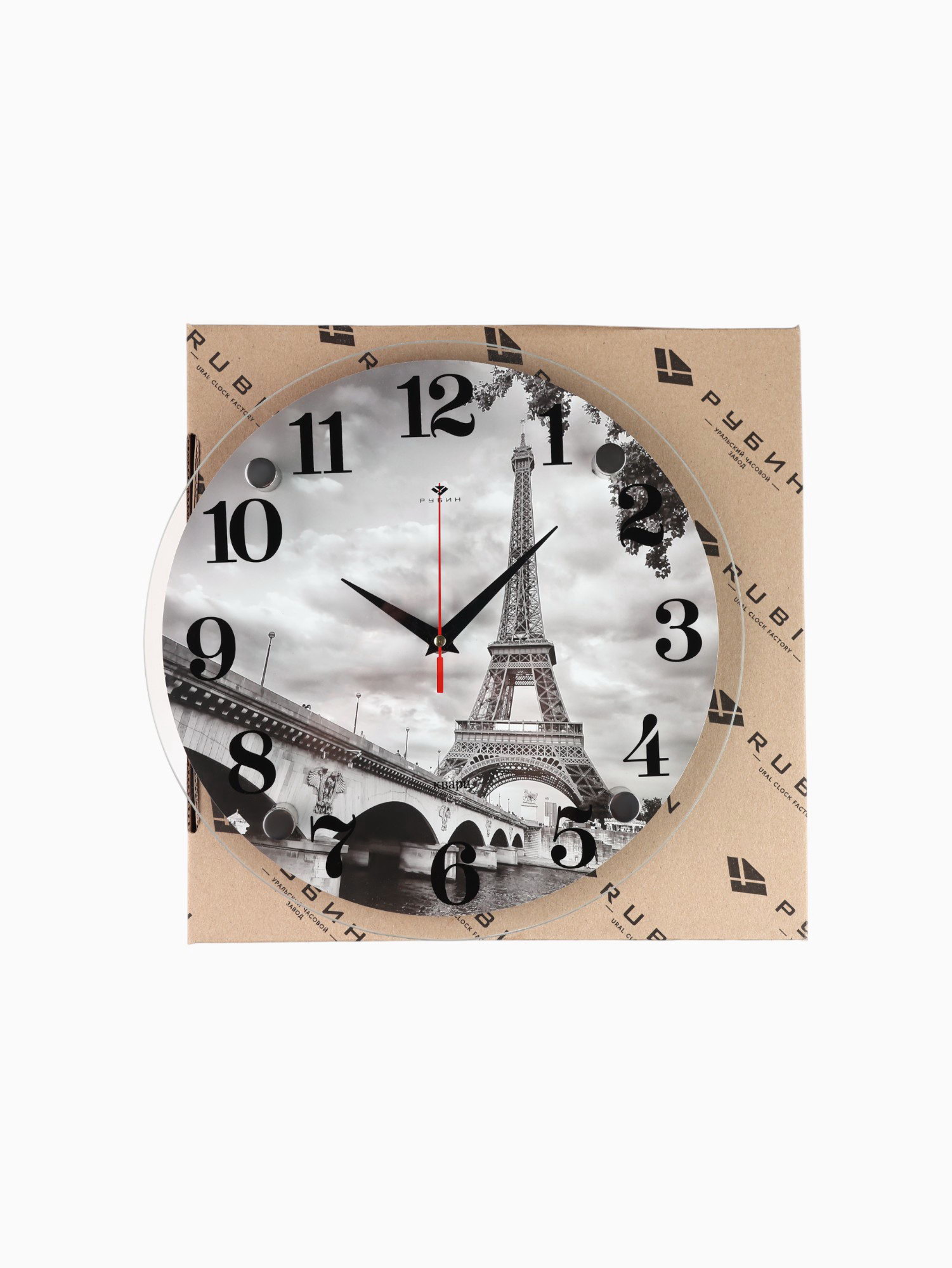Часы настенные, интерьерные "Эйфелева Башня", d-30 см, бесшумные, 30x30x4.3 см., Рубин, Россия