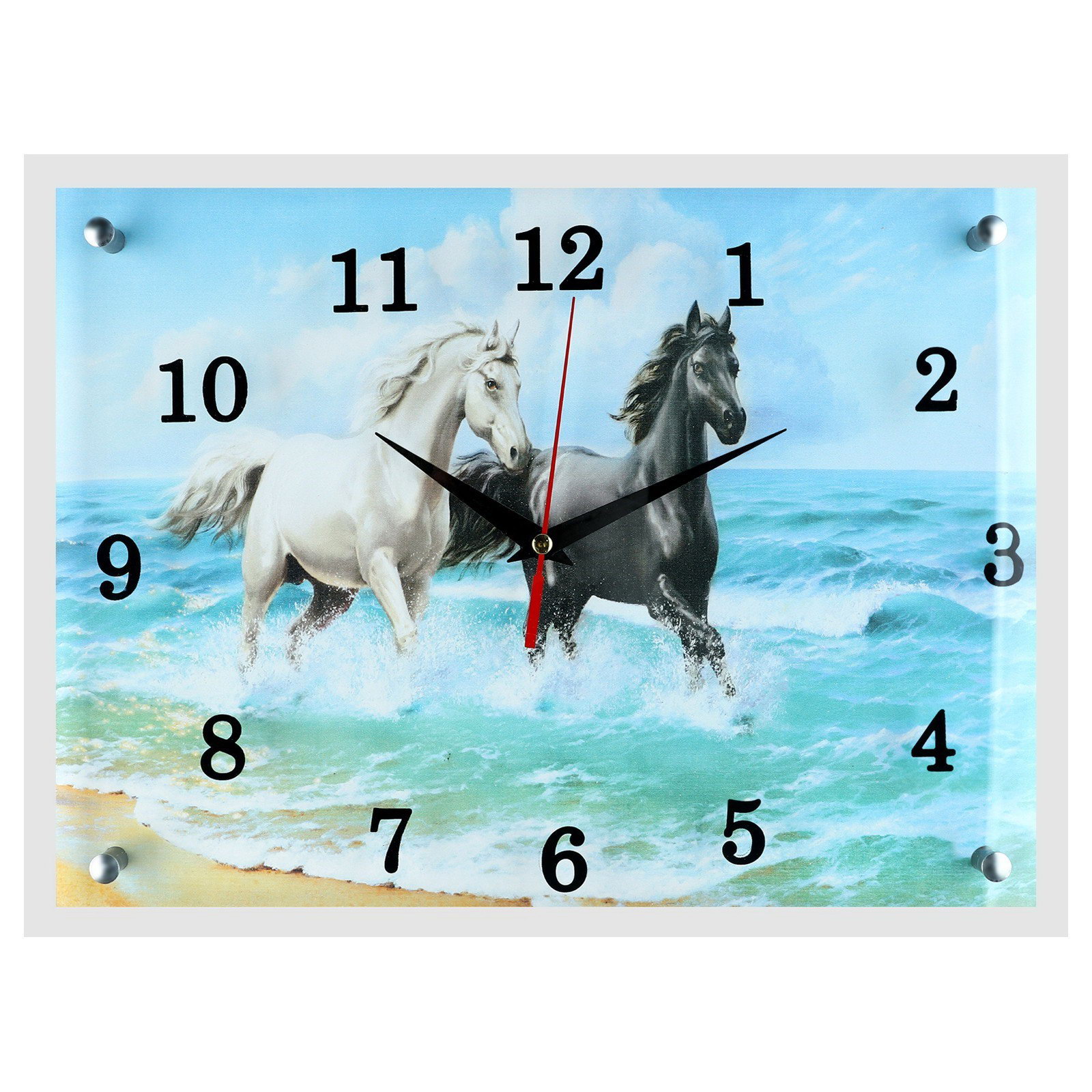 Часы - картина настенные интерьерные "Лошади в море", бесшумные, 30x40 см, 40x4.5x30 см., Сюжет, Россия
