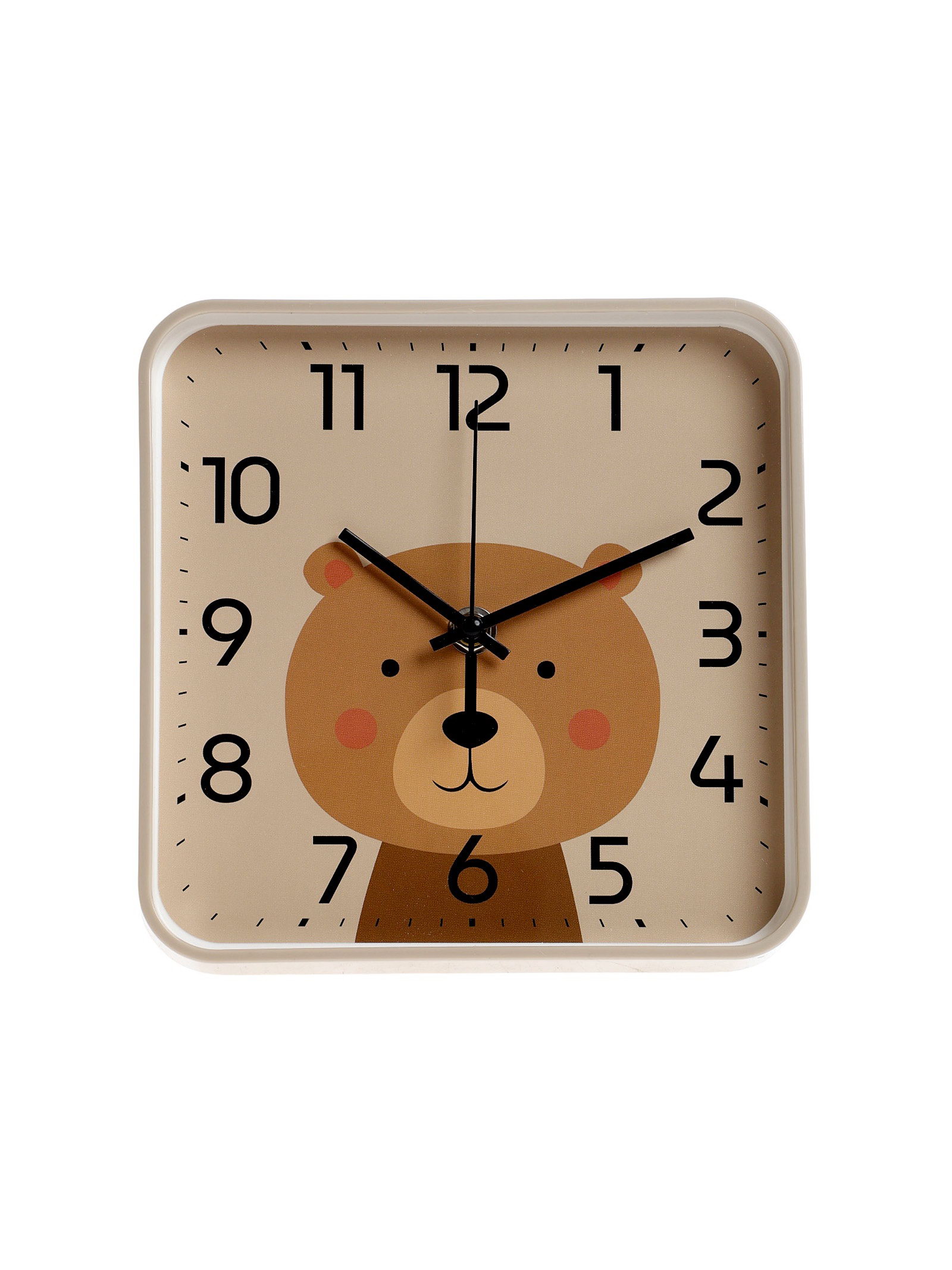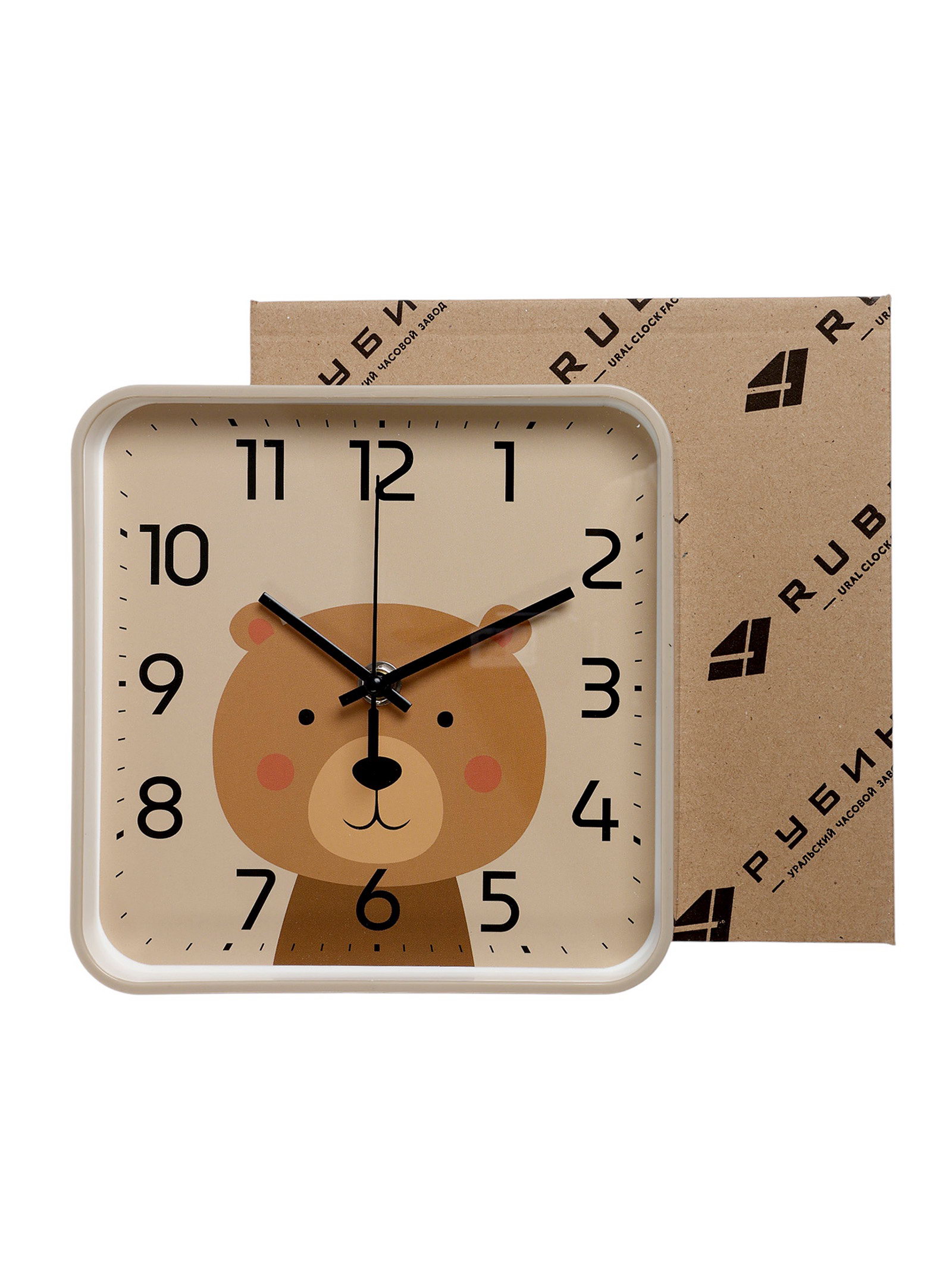 Часы настенные "Медвежонок", детские, плавный ход, 19x19 см, бежевые, Рубин, Россия