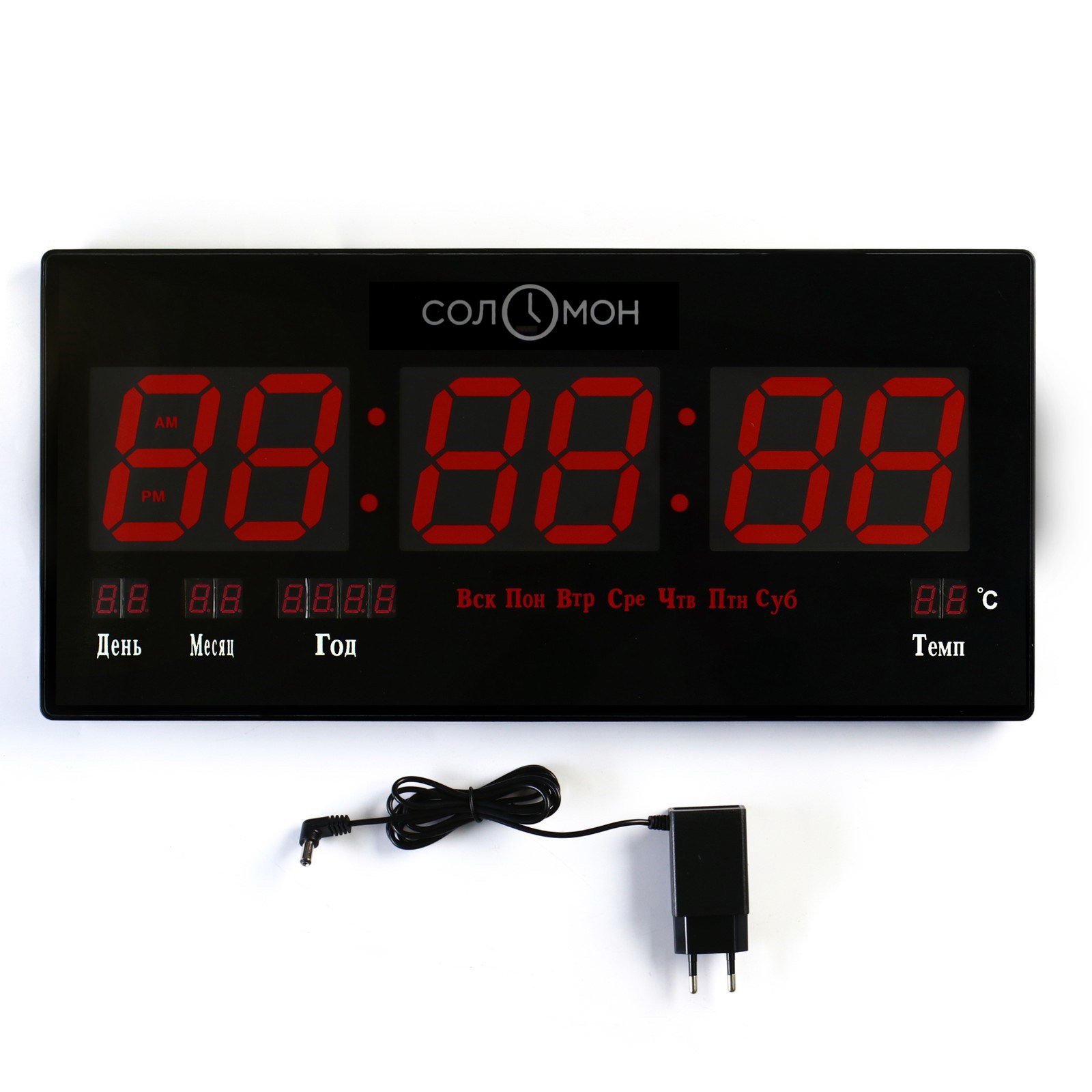 Часы электронные настенные термометр, календарь, 21.5 x 45.5 см, красная индикация, черные, 3x45.5x21.5 см., Соломон, Китай