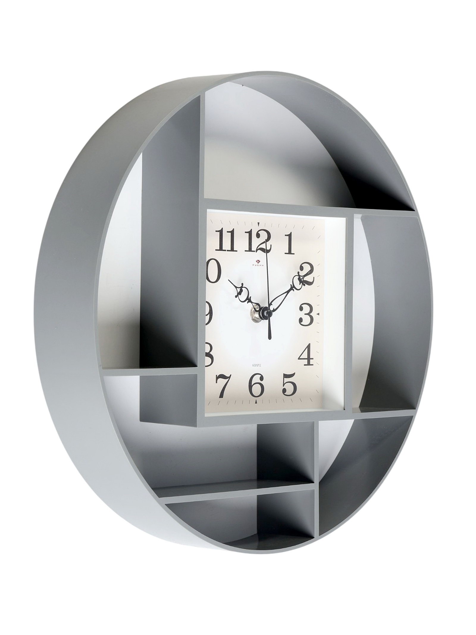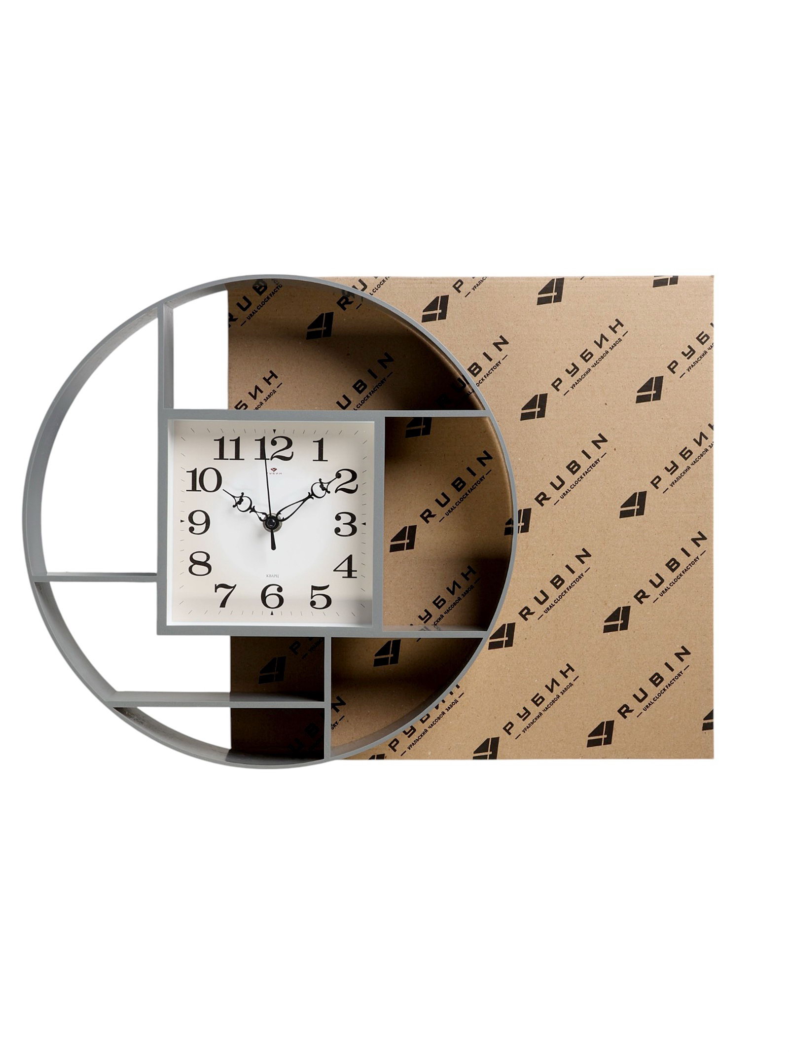 Часы настенные, интерьерные "Маганса", бесшумные, d-35 см, с полками, серые, Рубин, Россия
