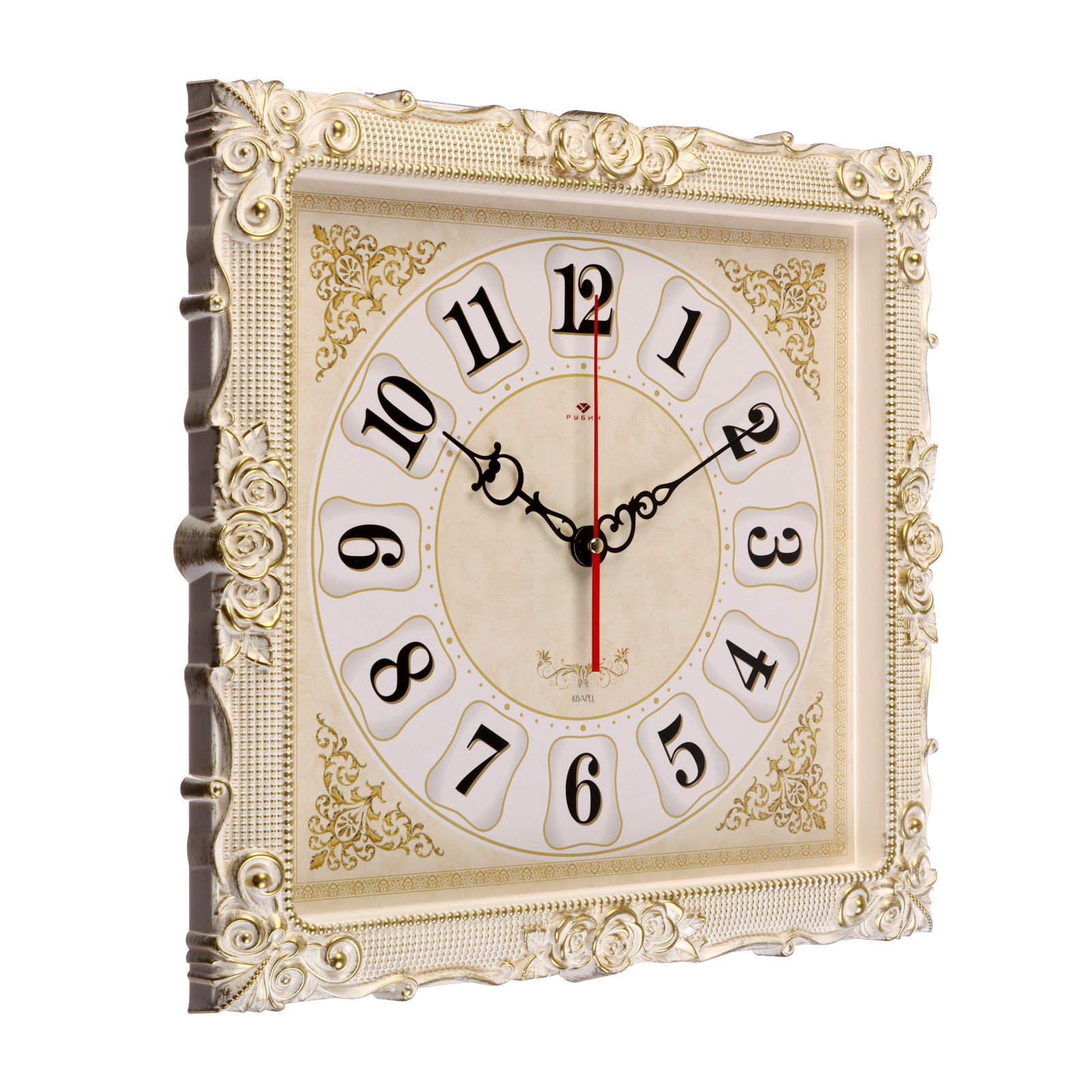 Часы настенные, интерьерные "Барака", бесшумные, 38 x 38 см, белое золото, Рубин, Россия