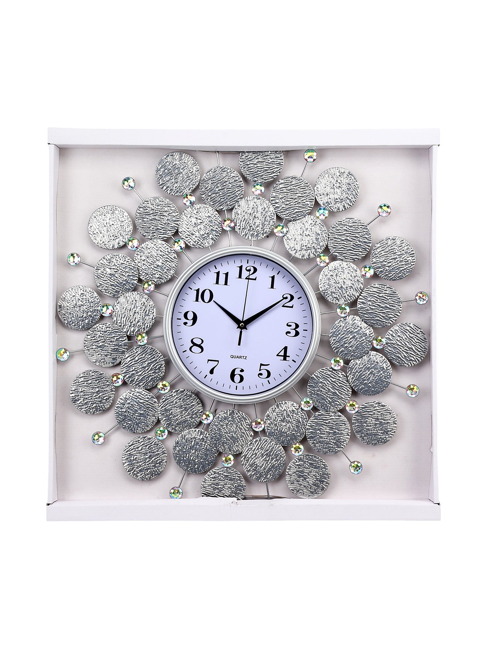 Размер упаковки: 60.5 x 4 x 60.5 см. Бесшумные: Да Работает от сети: Нет Тип питания: От батареек tnved: 9105210000 tnved: 9105210000 Тип индикации: Арабские цифры Форма: Фигурная Ход стрелок: Плавный Тематика: Интерьер Ширина, см: 60 Высота, см: 60 Диаметр циферблата, см: 22 Типоразмер батареек: AA (LR6) Тип механизма: Кварцевый Цвет корпуса: Серебристый Цвет циферблата: Белый Часы настенные интерьерные большие "Пабраде" – это стильный и элегантный аксессуар, который идеально подойдет для любого интерьера. Благодаря кварцевому механизму с плавным ходом, часы работают абсолютно бесшумно, создавая атмосферу спокойствия и комфорта в вашем доме. Большой размер часов позволяет им гармонично вписываться в просторные помещения. Современный и минималистичный дизайн часов делает их универсальным дополнением к различным стилям интерьера. Большие настенные часы станут великолепным дополнением любого интерьера. Они способны добавить изысканности и уникальности любой комнате, будь то гостиная, спальня, кухня, кабинет или даже прихожая. Такие часы могут послужить отличным подарком для близких людей или любимых на различные праздники, подчеркивая заботу и внимание дарителя. | ||