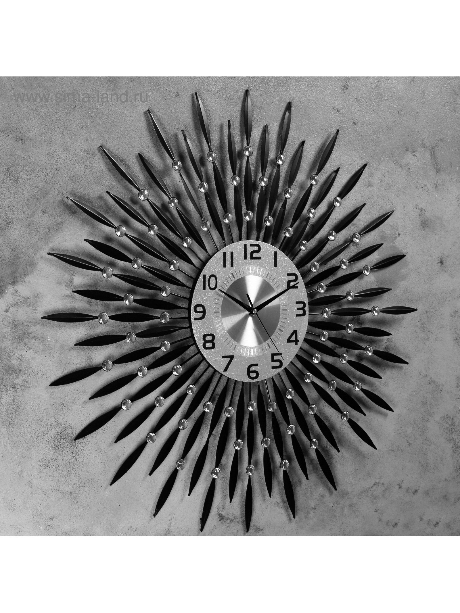 Размер упаковки: 71 x 5 x 71 см. Бесшумные: Да Работает от сети: Нет Тип питания: От батареек Типоразмер батареек: AA (LR6) Тематика: Интерьер tnved: 9105210000 Форма: Фигурная Тип индикации: Арабские цифры Высота, см: 70 Ширина, см: 70 Ход стрелок: Плавный Тип механизма: Кварцевый Цвет корпуса: Чёрный Цвет циферблата: Серебристый Часы настенные функциональный элемент декора, который будет уместно смотреться в квартирах, офисах, приемных, вестибюлях, залах ожидания. Они станут отличным подарком на любой праздник. Корпус часов универсален, придаёт стиль и изысканность любой комнате. Часы оснащены кварцевым механизмом, что гарантирует длительный срок их службы. Особенности: