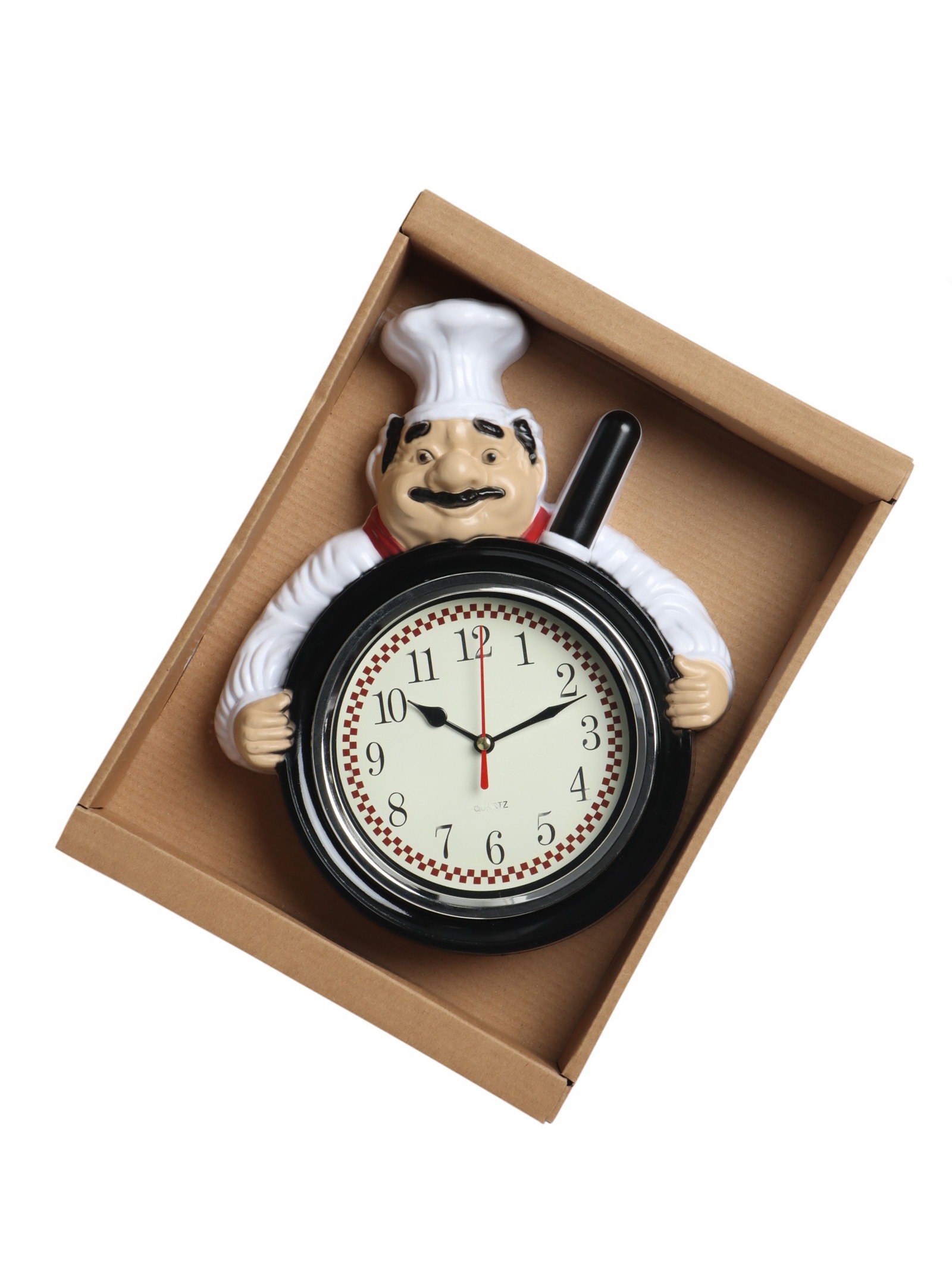 Цвет корпуса: Белый, Чёрный Размер упаковки: 24.5 x 32 x 6 см. Ширина, см: 20 Бесшумные: Нет Высота, см: 26.5 Тип индикации: Арабские цифры Тип механизма: Кварцевый Тематика: Кухня Размер, см: 26.5 x 20 Ход стрелок: Дискретный Цвет циферблата: Белый Форма: Фигурная tnved: 9105210000 tnved: 9105210000 Работает от сети: Нет Тип питания: От батареек Форма корпуса: Фигурная Типоразмер батареек: AA (LR6) Особенности