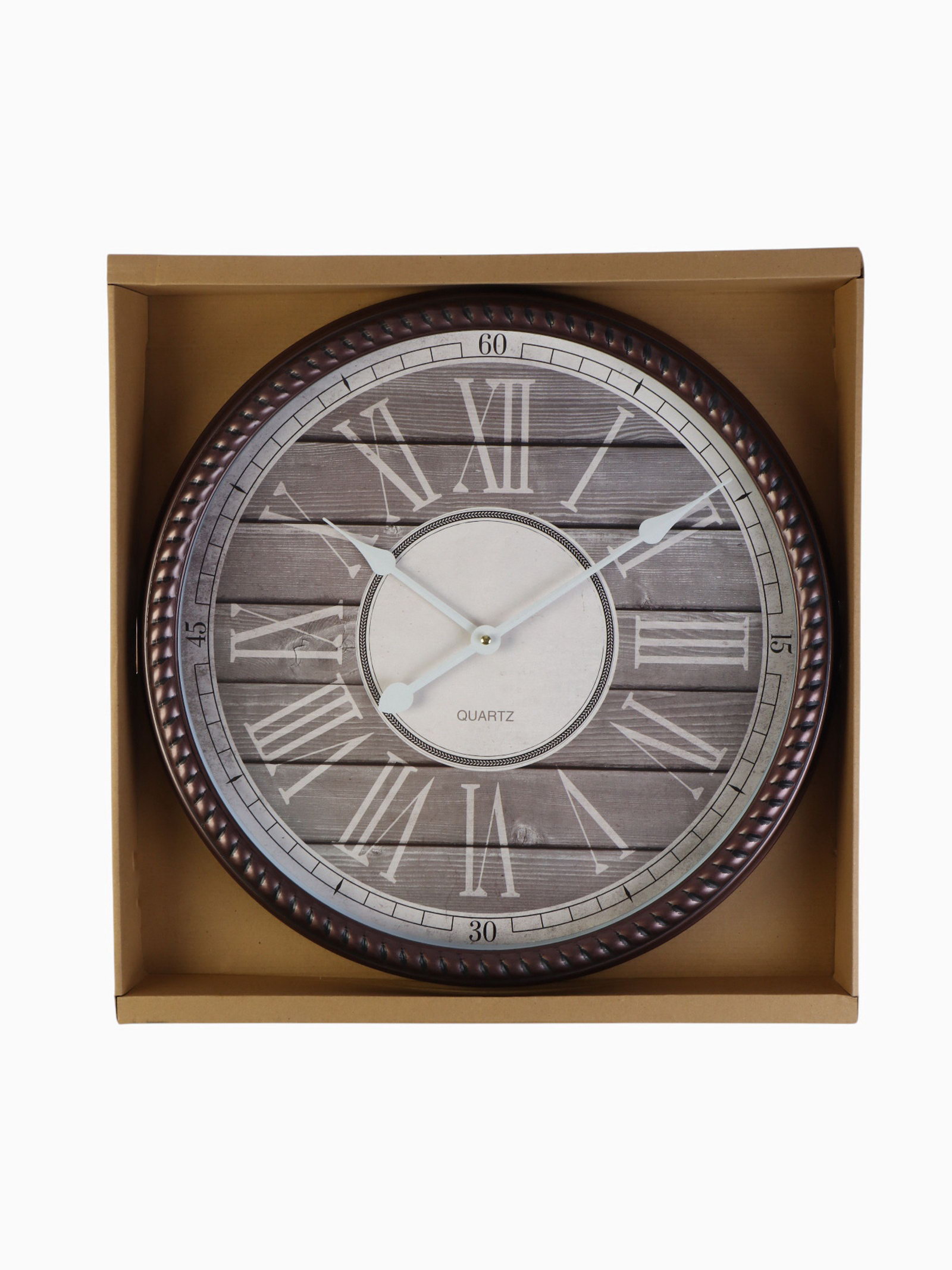 Цвет циферблата: Белый, Серый Размер упаковки: 51 x 6.5 x 53 см. Бесшумные: Нет Работает от сети: Нет Ход стрелок: Дискретный Типоразмер батареек: AA (LR6) Тип питания: От батареек Тематика: Интерьер Тематика: Интерьер tnved: 9105210000 Форма: Круглая Ширина, см: 50 Высота, см: 50 Тип индикации: Римские цифры Тип механизма: Кварцевый Цвет корпуса: Медный Особенности