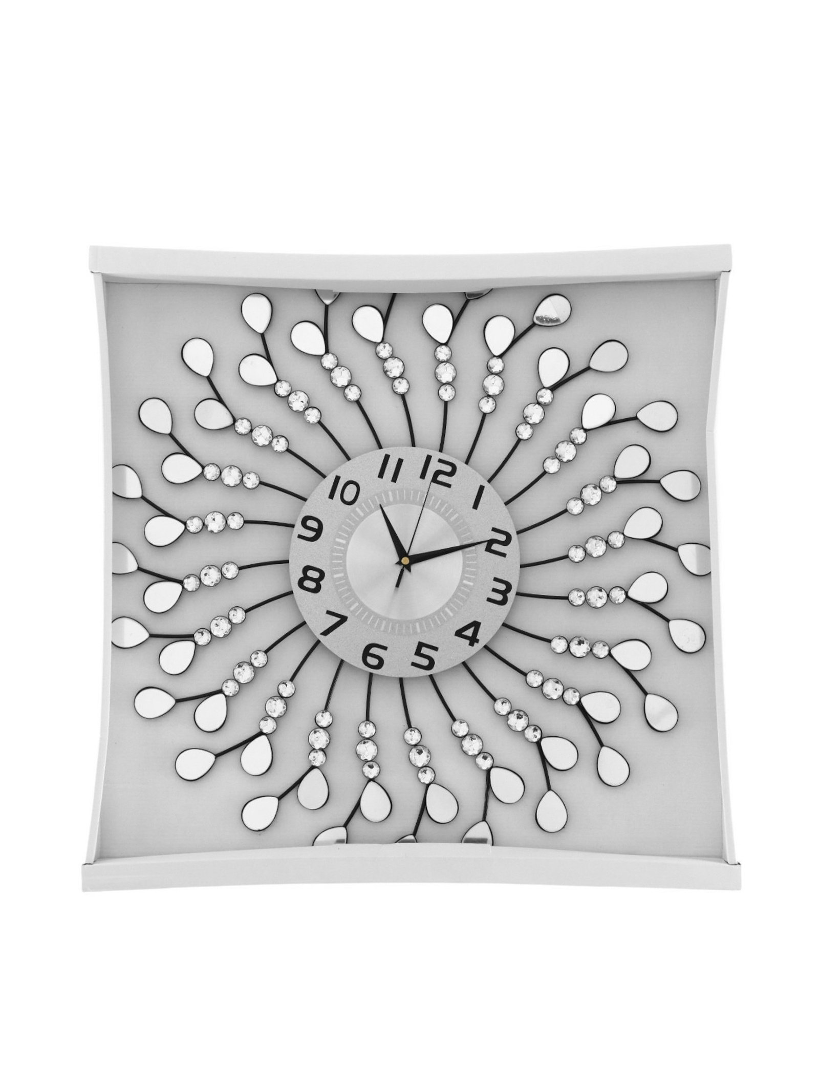 Размер упаковки: 61 x 4 x 61 см. Бесшумные: Да Тип питания: От батареек Работает от сети: Нет tnved: 9105210000 Форма: Круглая Тип индикации: Арабские цифры Высота, см: 58 Диаметр циферблата, см: 22 Ширина, см: 58 Ход стрелок: Плавный Тематика: Интерьер Типоразмер батареек: AA (LR6) Тип механизма: Кварцевый Цвет корпуса: Серебристый Цвет циферблата: Серебристый Особенности