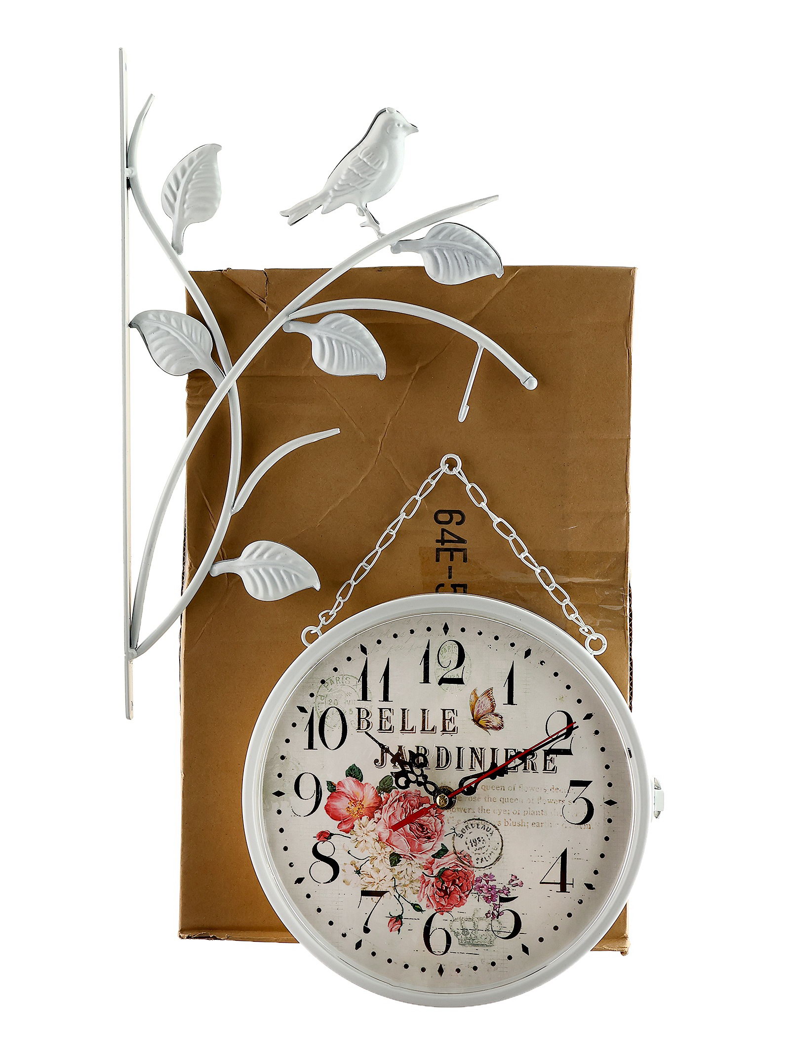 Часы настенные двусторонние, на подвесе "Птичка на ветке", d-23 см, белые, 8x47x31 см., Китай