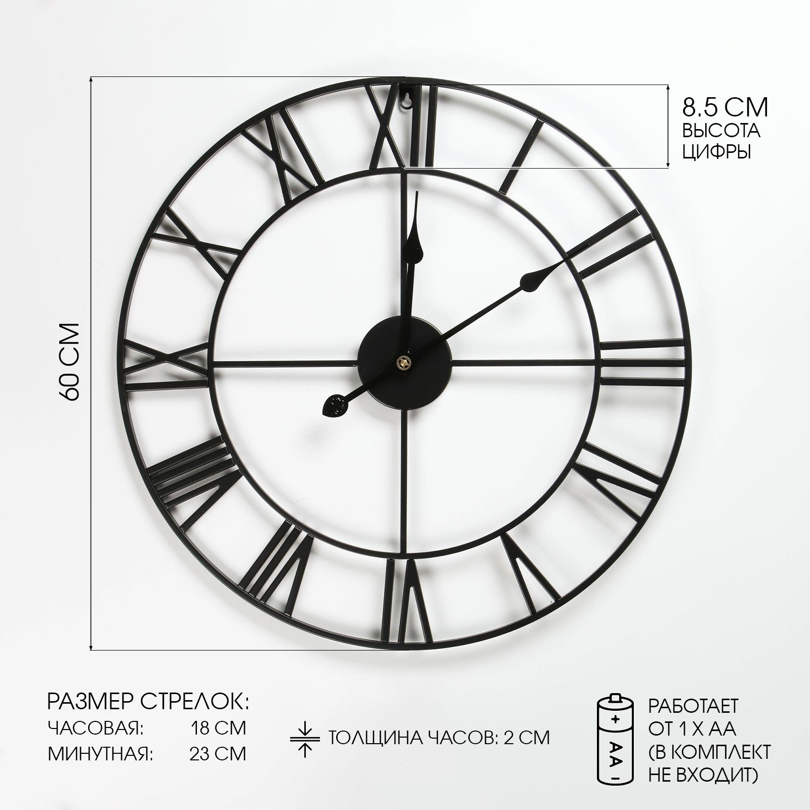 Часы настенные, серия: Лофт, "Талан", дискретный ход, d-60=см, чёрные, Китай