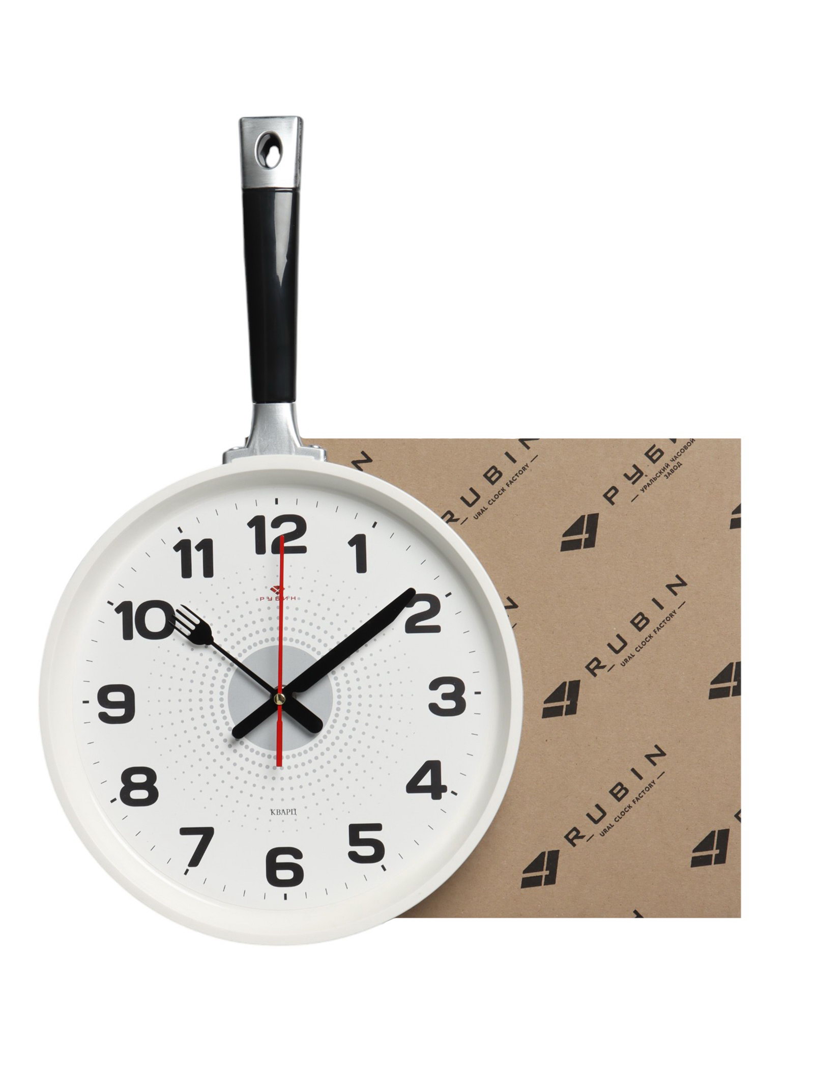 Часы настенные интерьерные для кухни "Сковорода", бесшумные, 25 x 43 см, белые, АА, Рубин, Россия