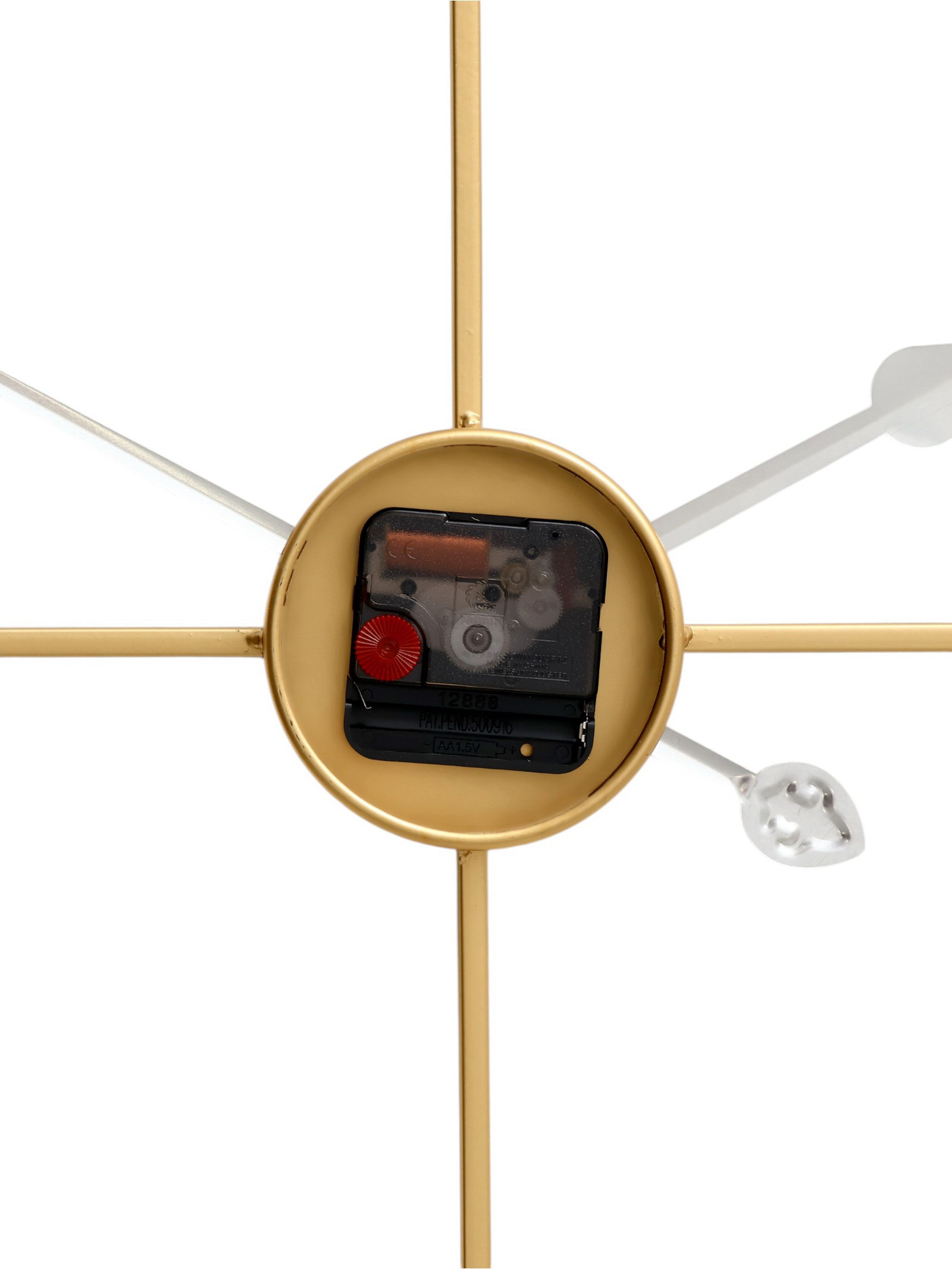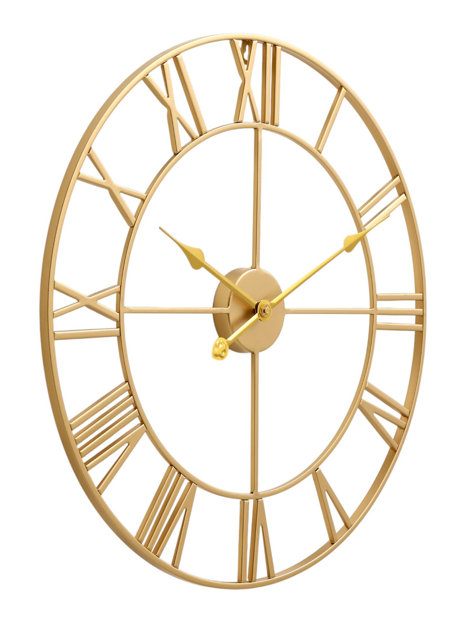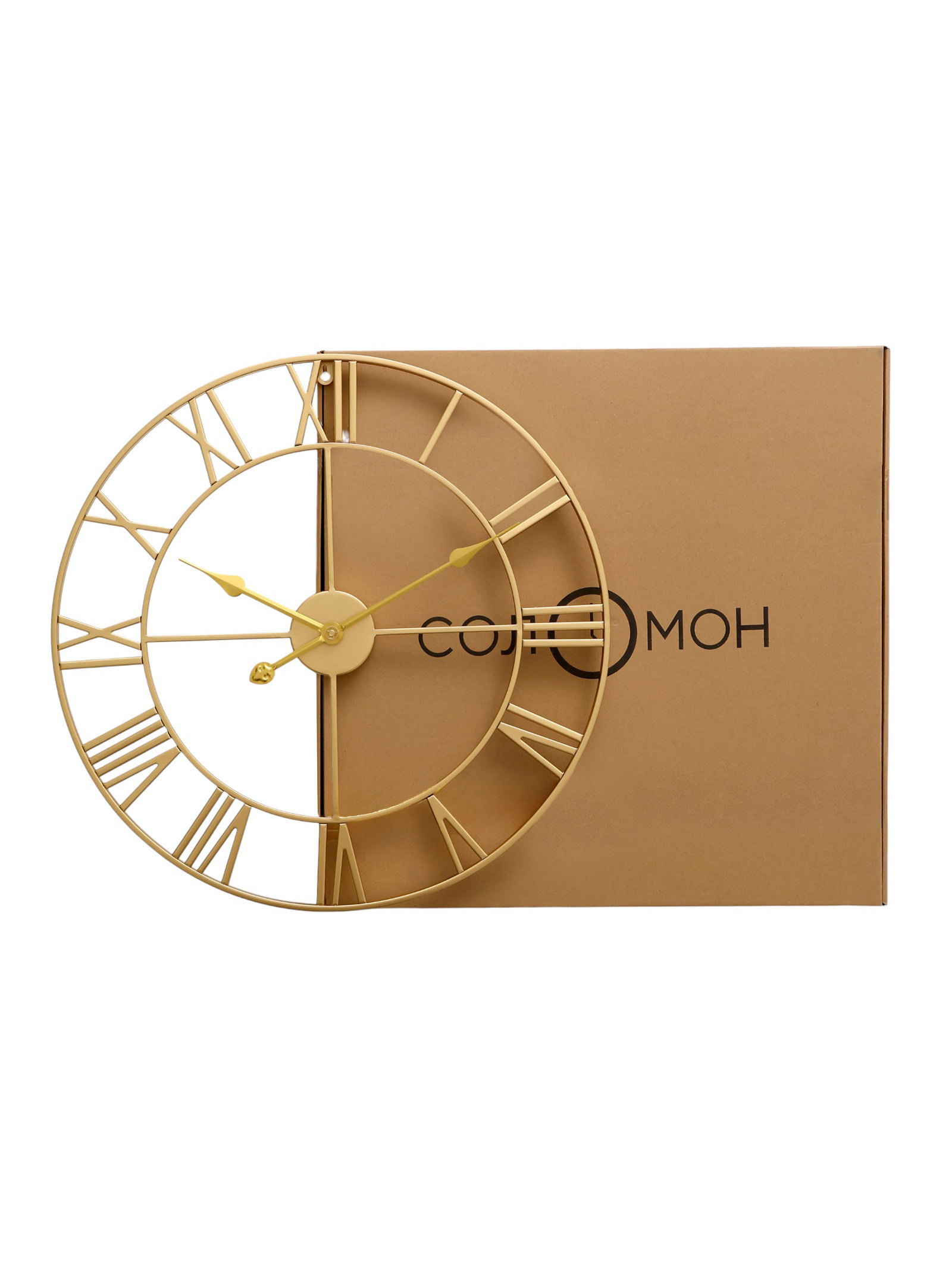 Размер упаковки: 5 x 60.5 x 61.5 см. Бесшумные: Да Цвет корпуса: Золотистый Цвет циферблата: Золотистый Тип питания: От батареек Типоразмер батареек: AA (LR6) Тематика: Интерьер Работает от сети: Нет Работает от сети: Нет tnved: 9105210000 Тип индикации: Римские цифры Форма: Круглая Ширина, см: 60 Высота, см: 60 Тип механизма: Кварцевый Ход стрелок: Плавный Особенности