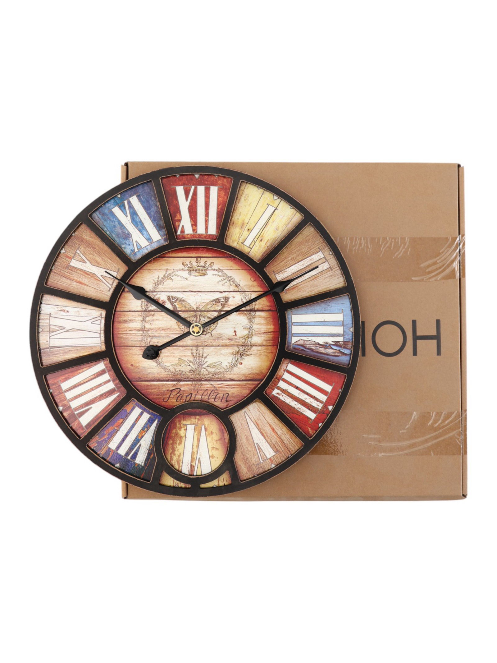 Размер упаковки: 43 x 6 x 43 см. Цвет корпуса: Коричневый Типоразмер батареек: AA (LR6) Тип питания: От батареек Ход стрелок: Дискретный Тематика: Интерьер Бесшумные: Нет Работает от сети: Нет Цвет циферблата: Разноцветный tnved: 9105210000 tnved: 9105210000 Тип индикации: Римские цифры Форма: Круглая Высота, см: 40 Ширина, см: 40 Тип механизма: Кварцевый Особенности