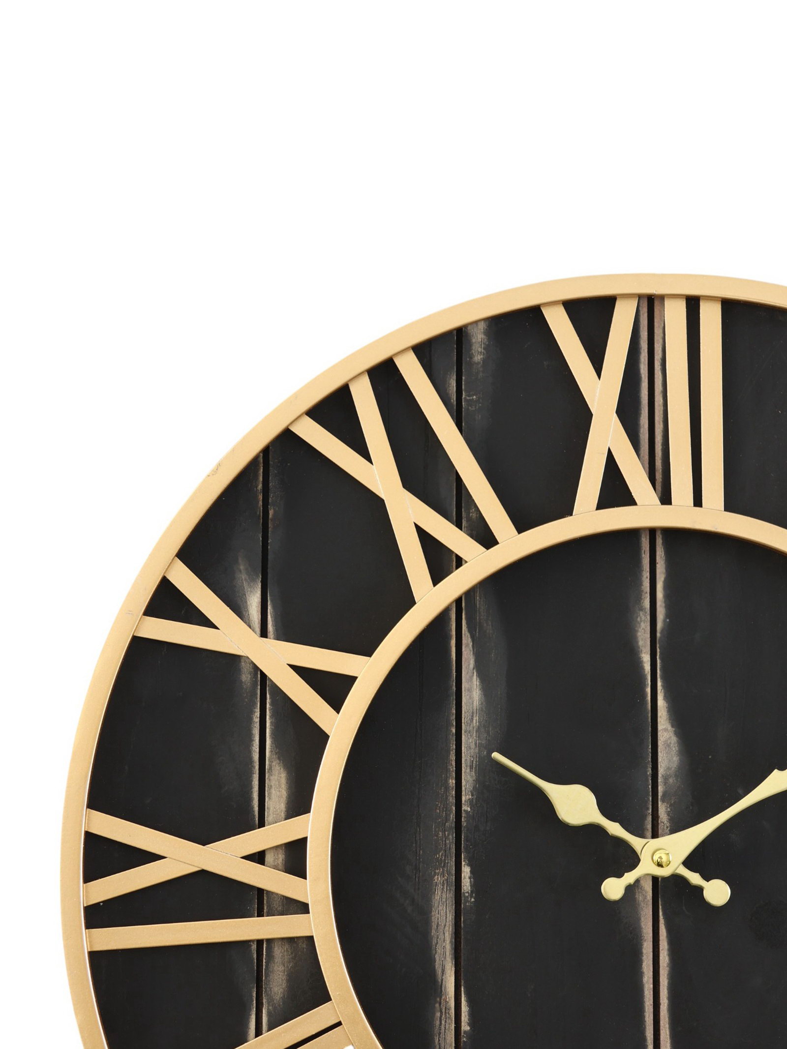 Размер упаковки: 50 x 5 x 52 см. Бесшумные: Да Работает от сети: Нет Тематика: Интерьер Тип питания: От батареек Типоразмер батареек: AA (LR6) Типоразмер батареек: AA (LR6) tnved: 9105210000 Ход стрелок: Плавный Тип индикации: Римские цифры Форма: Круглая Высота, см: 60 Ширина, см: 60 Тип механизма: Кварцевый Цвет корпуса: Золотистый Цвет циферблата: Чёрный Современные настенные часы отличное интерьерное решение для вашего дома. Интерьерные настенные часы это универсальный подарок, они порадуют коллегу и начальника, бабушку, маму и подругу, мужчину и женщину. Прекрасный вариант подарка на новоселье! Особенности: