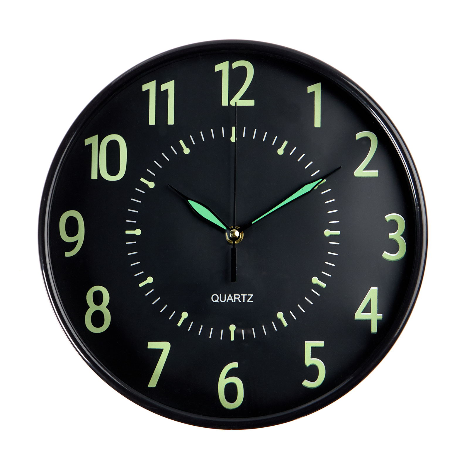 Размер упаковки: 30.5 x 4 x 30.5 см. Ход стрелок: Плавный Бесшумные: Да Типоразмер батареек: AA (LR6) Тематика: Интерьер Тип питания: От батареек Работает от сети: Нет tnved: 9105210000 Высота, см: 30 Ширина, см: 30 Тип индикации: Арабские цифры Форма: Круглая Тип механизма: Кварцевый Цвет корпуса: Чёрный Цвет циферблата: Чёрный Настенные часы - идеальное решение для создания стильного и уютного интерьера. Эти часы настоящая находка для тех, кто ценит качество и неповторимый дизайн. Настенные часы - это не только функциональный предмет, но и настоящий декоративный аксессуар. За счёт флуоресцентного (светящегося в темноте) циферблата разнообразят интерьер любой спальни или гостиной, они подчеркнут стиль и гармонию вашего дома. Особенности: