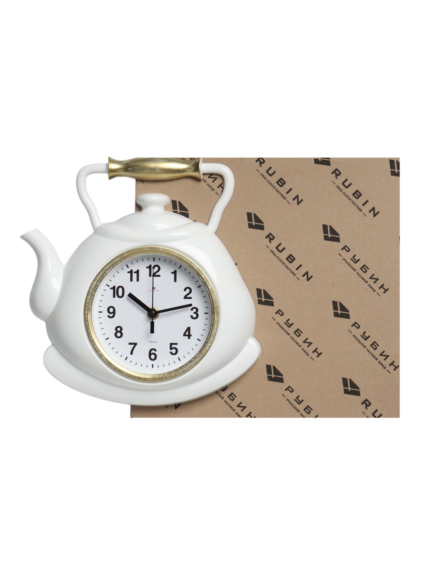 Часы настенные, интерьерные для кухни "Чайник", бесшумные, 27 x 28.5 см, белые, Рубин, Россия
