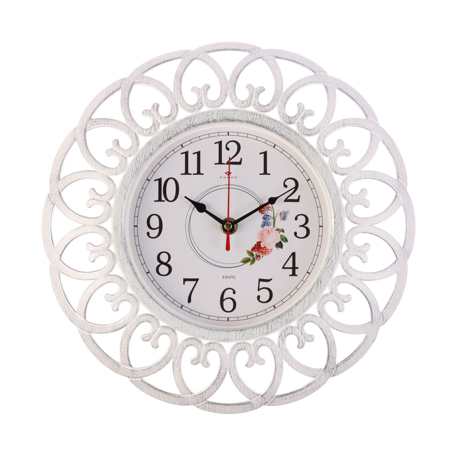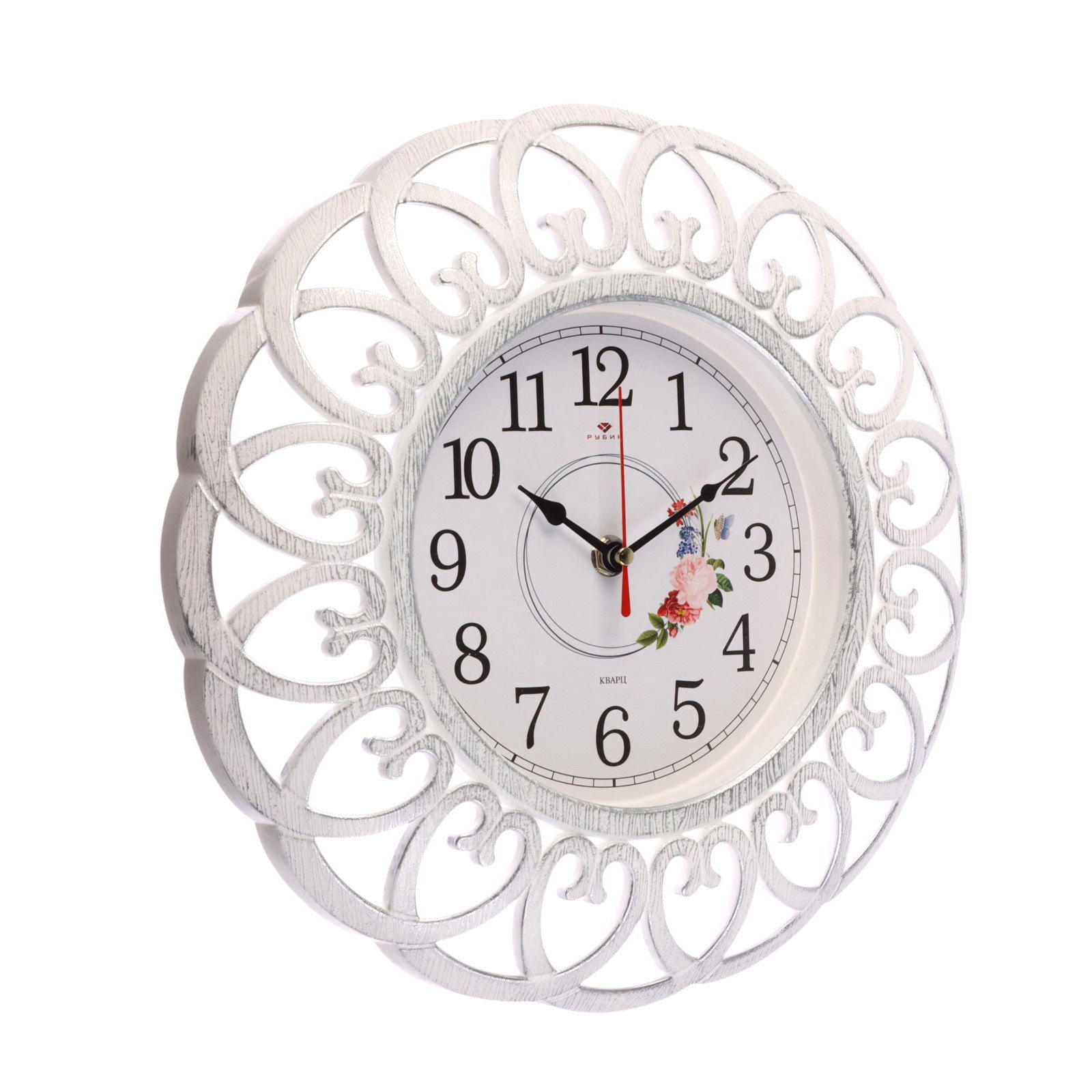 Размер упаковки: 31 x 5 x 31 см. Бесшумные: Да tnved: 9105210000 Температурное ограничение: Нет Форма: Круглая Ширина, см: 30 Высота, см: 30 Цвет корпуса: Белый Тип механизма: Кварцевый Тематика: Цветочно-растительная Ход стрелок: Плавный Тип индикации: Арабские цифры Цвет циферблата: Белый Настенные часы диаметром 30 см - отличное решение для тех, кто хочет сделать свой интерьер оригинальным и индивидуальным. Винтажный стиль, изысканный ажурный орнамент добавит шарма в любое помещение. Часы работают от одной батарейки АА "пальчиковая", в комплект не входит. Ход часов плавный, бесшумный. Кварцевый механизм гарантирует точность хода и долгосрочную эксплуатацию. Эти большие красивые часы будут отличным подарком для любителей винтажного стиля, а также для тех, кто ищет неординарные и стильные решения для своего дома или офиса. Они порадуют вас своим красивым и необычным дизайном и станут настоящей украшением вашего интерьера. | ||