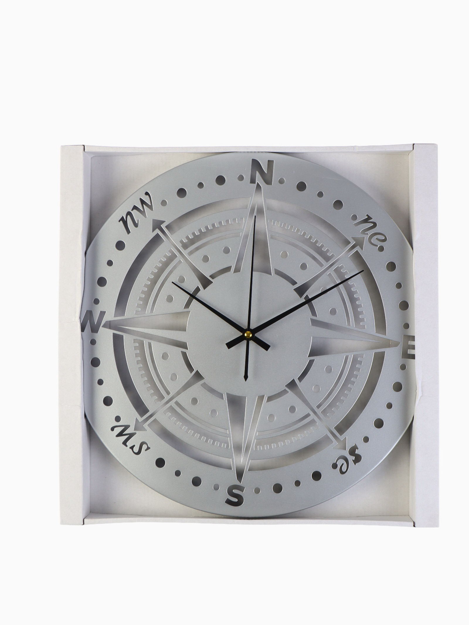 Часы настенные интерьерные "Компас", плавный ход, d-40 см, серебристые, Китай
