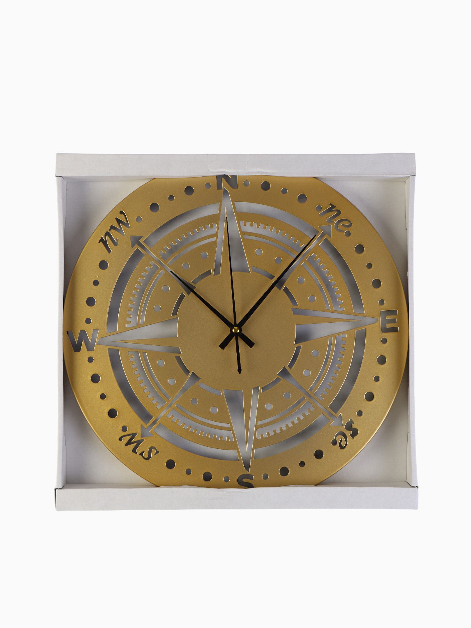 Часы настенные интерьерные "Компас", плавный ход, d-40 см, золотистые, Китай