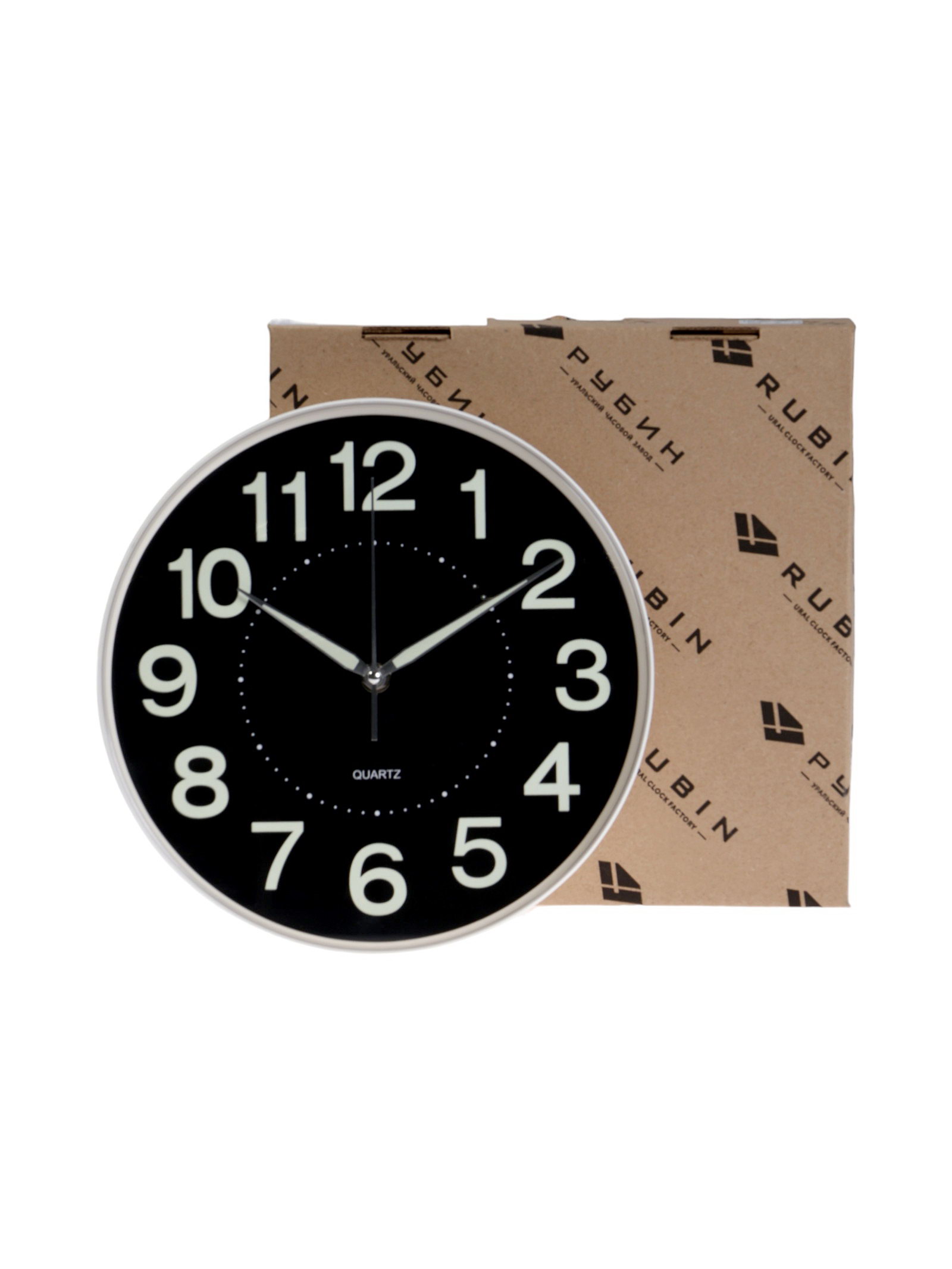 Часы настенные "Светящиеся", интерьерные, d=25 см, плавный ход, чёрные с белым корпусом, Рубин, Россия
