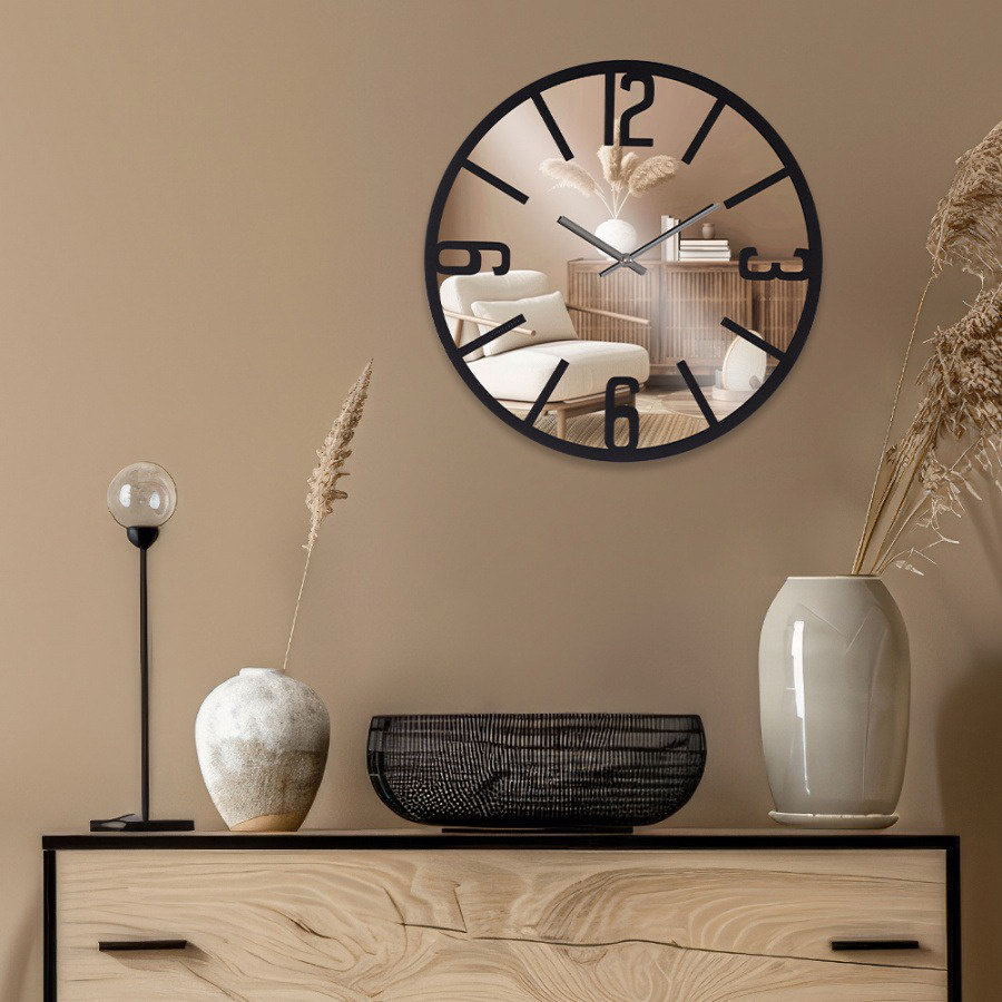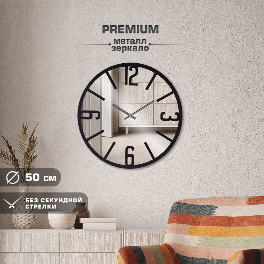 Часы настенные, интерьерные, бесшумные, d-50 см, зеркало, черные, Рубин, Россия