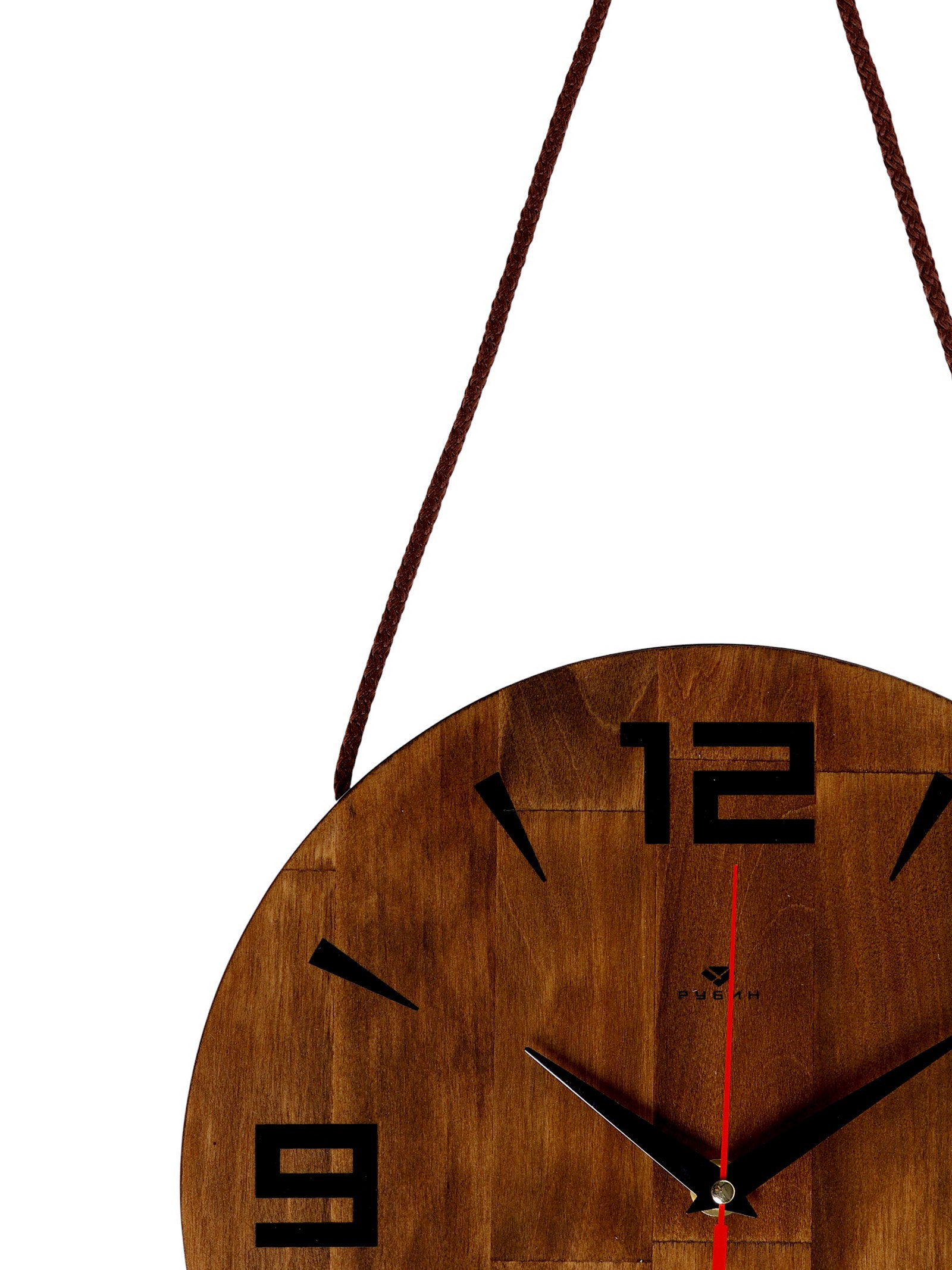 Часы настенные, интерьерные, бесшумные, d=30 см, дерево, коричневые, Рубин, Россия