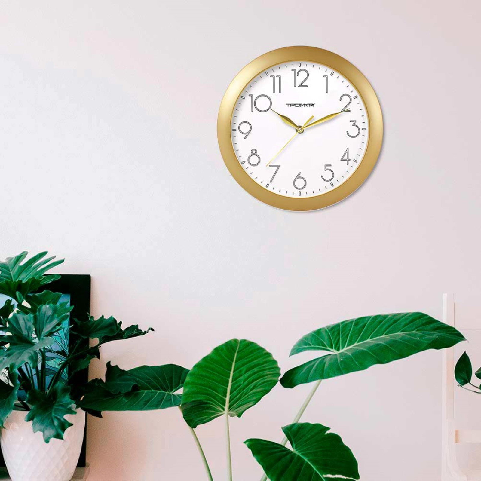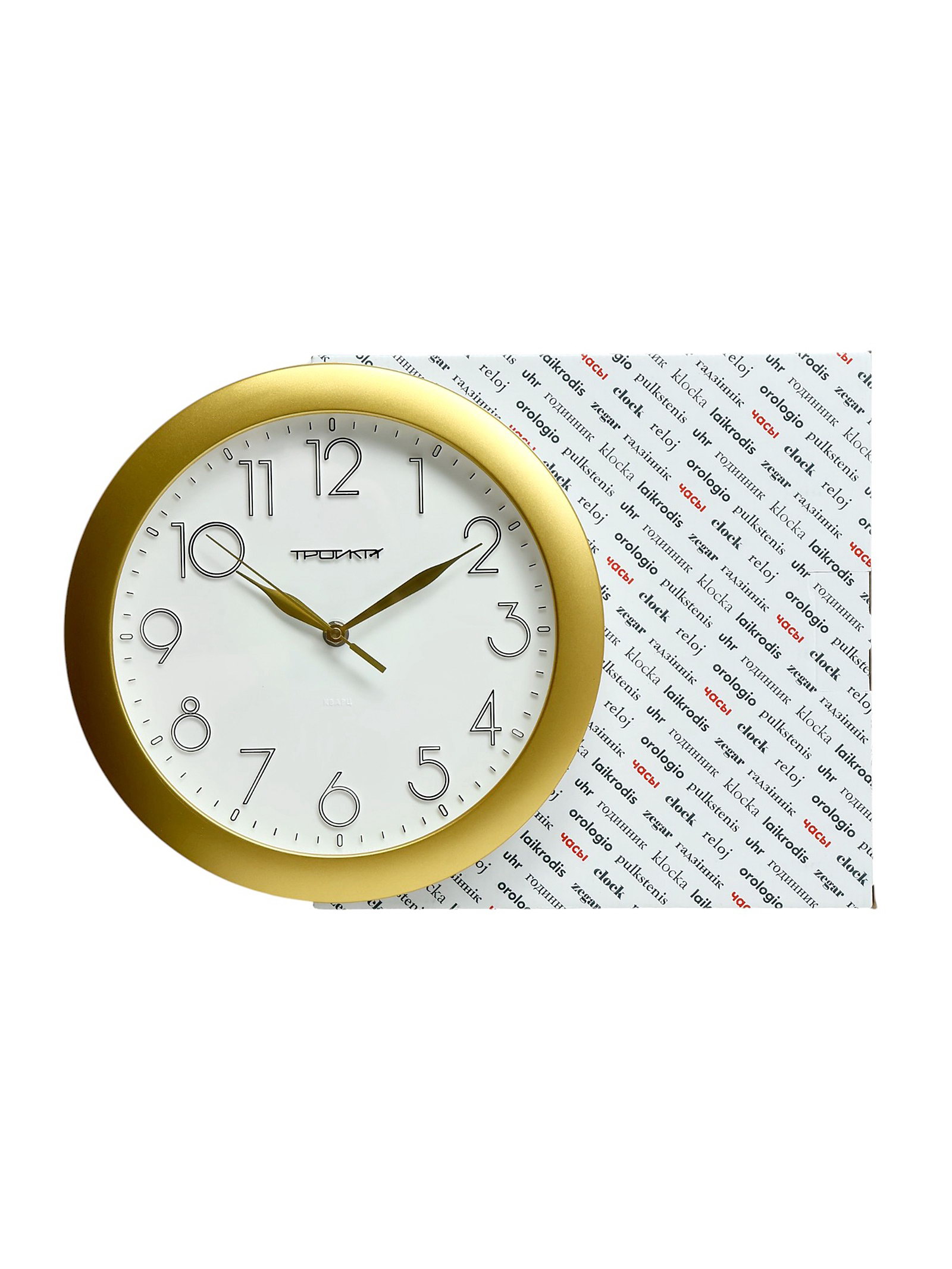 Часы настенные, серия: Классика, d=29 см, золотистый обод, TROYKATIME, Беларусь